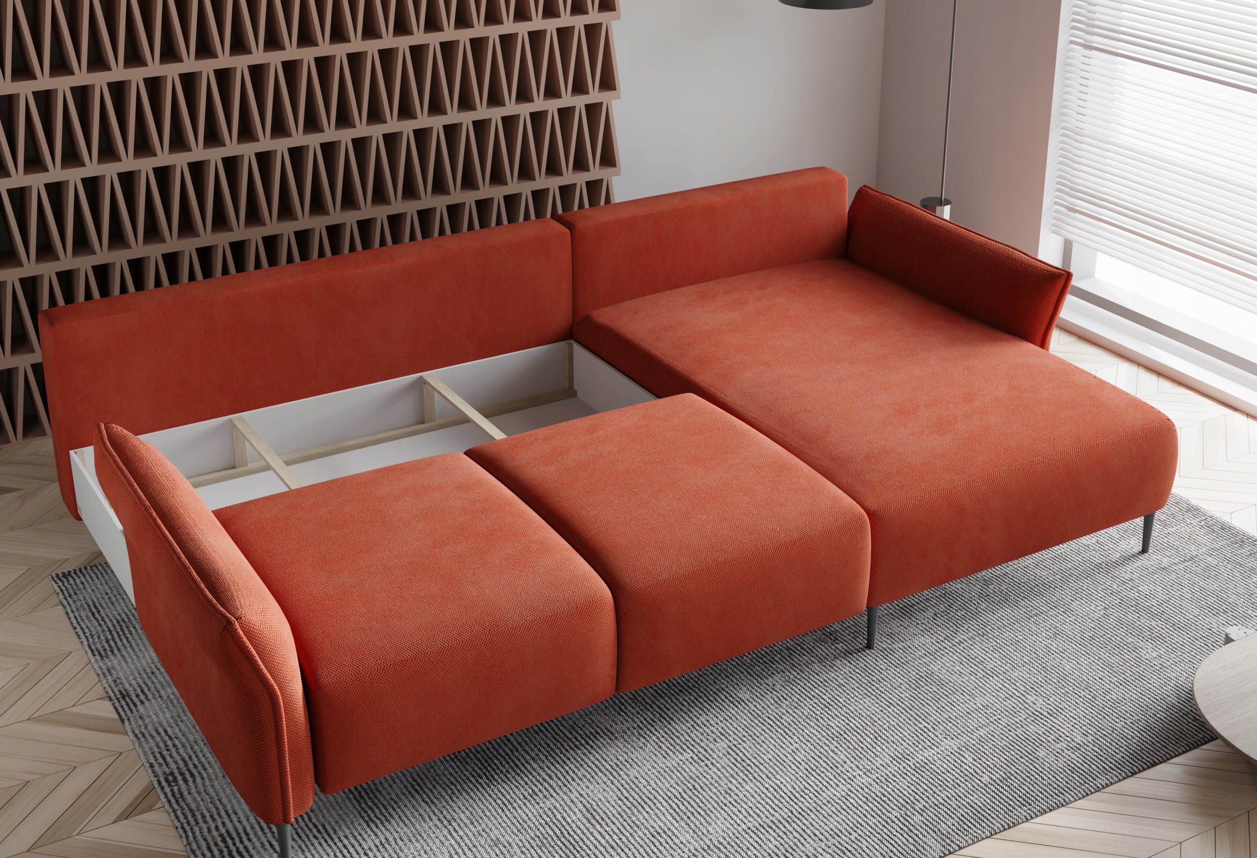 Dzięki zastosowaniu sprężyn falistych i pianki wysokoelastycznej, narożnik LUIS zapewnia wygodę zarówno podczas siedzenia, jak i snu. Funkcja spania oraz praktyczny pojemnik na pościel sprawiają, że to mebel idealny do salonu lub pokoju dziennego.