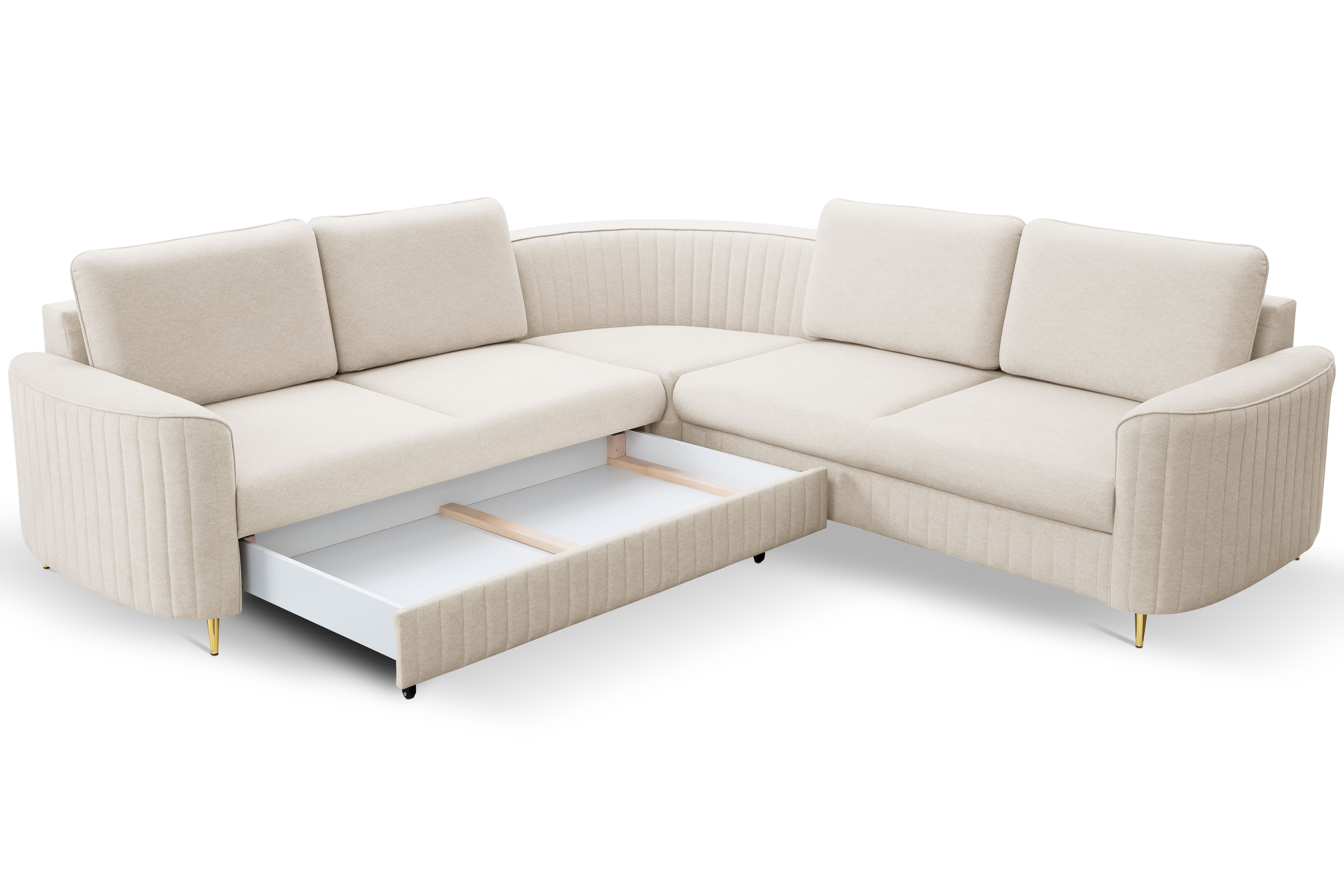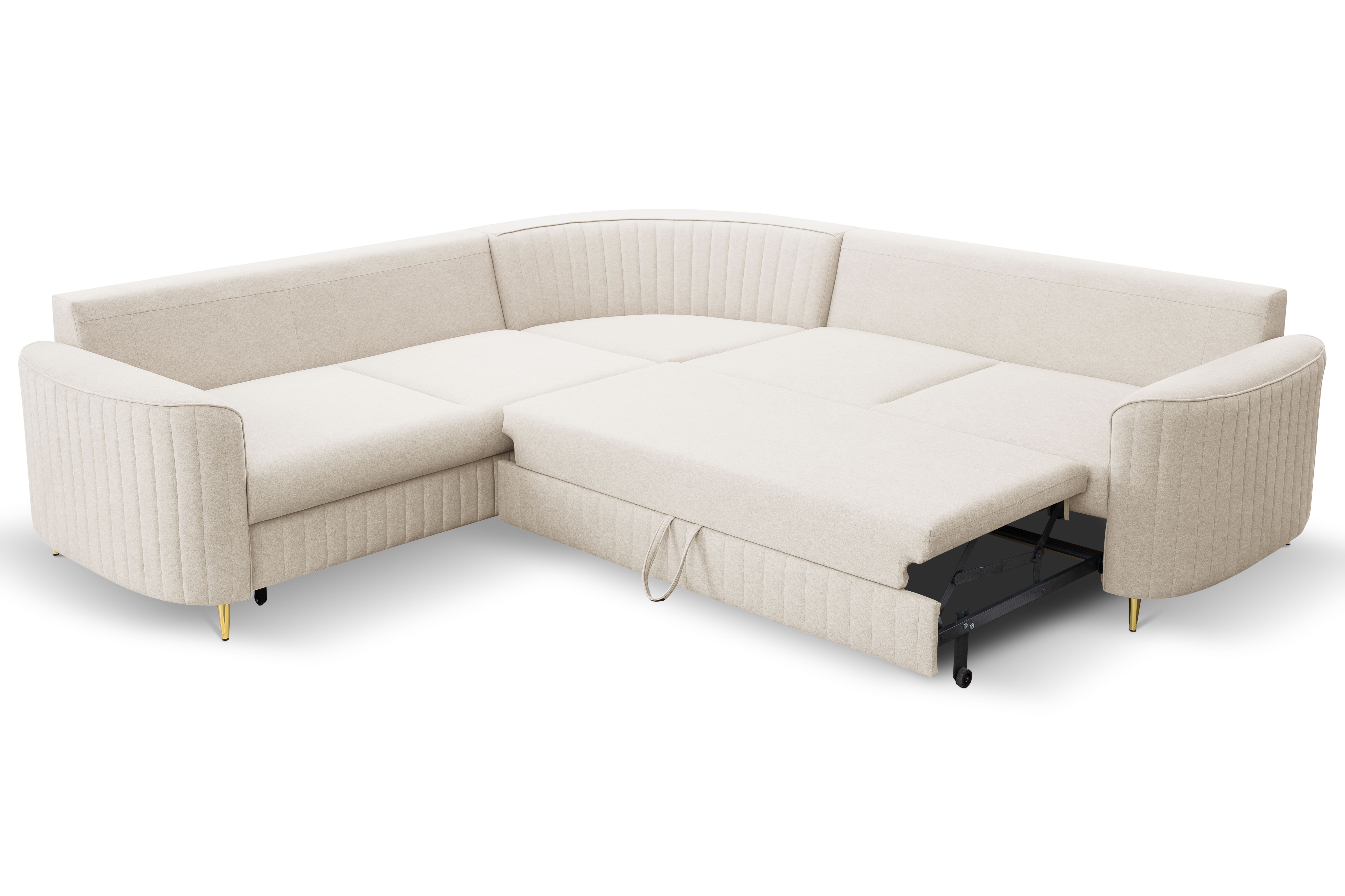 • Funkcja spania: Dzięki automatycznemu mechanizmowi narożnik łatwo przekształcisz w obszerne łóżko – idealne dla gości lub na codzienny odpoczynek.