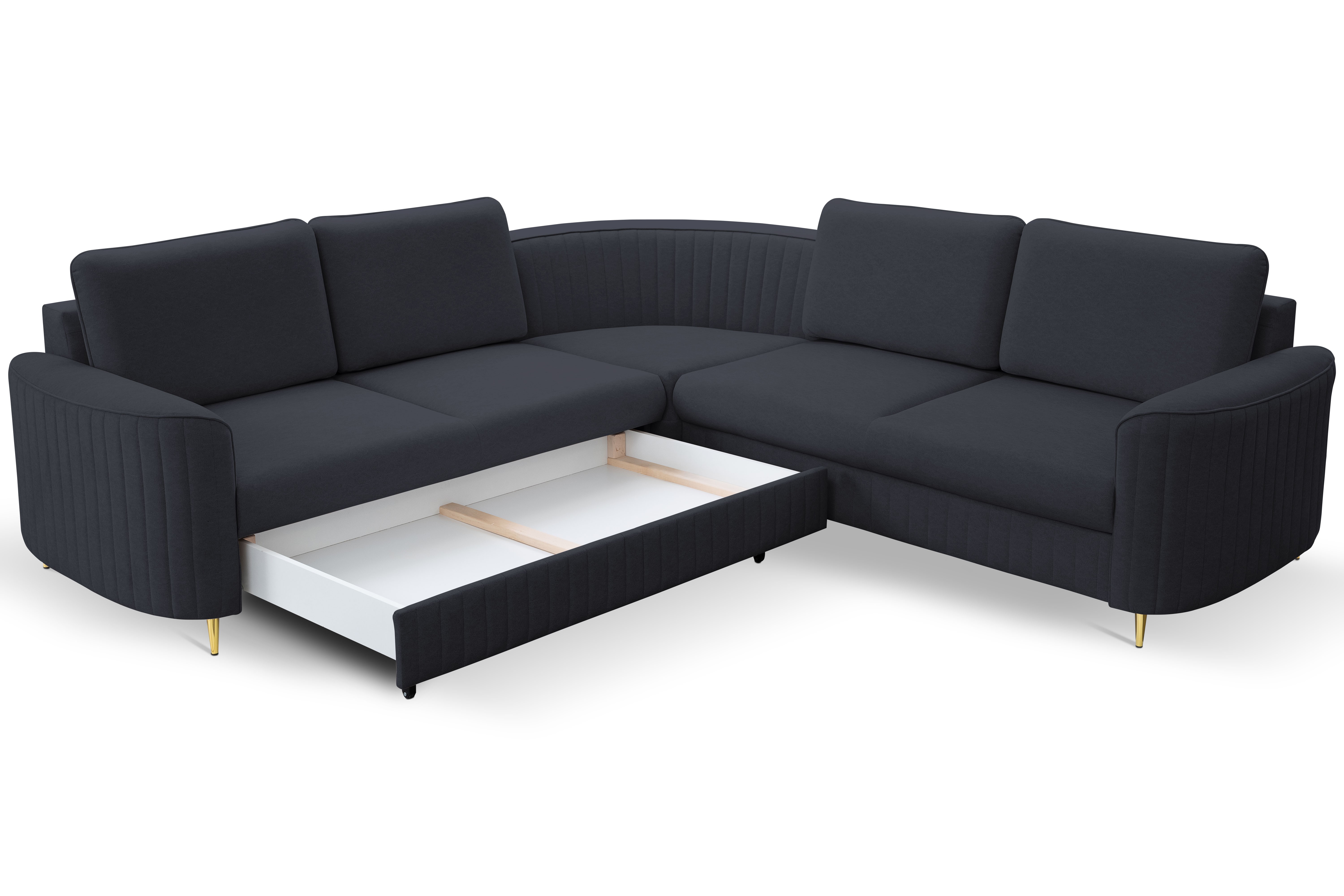 Narożnik LAREN nowoczesna sofa z funkcją spania pojemnik na pościel lewa strona CASTEL 79 251x251x85 cm