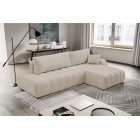 Funkcja spania umożliwia szybkie przekształcenie narożnika w wygodne miejsce do odpoczynku, a pojemnik na pościel pozwala na praktyczne przechowywanie kołder i poduszek.