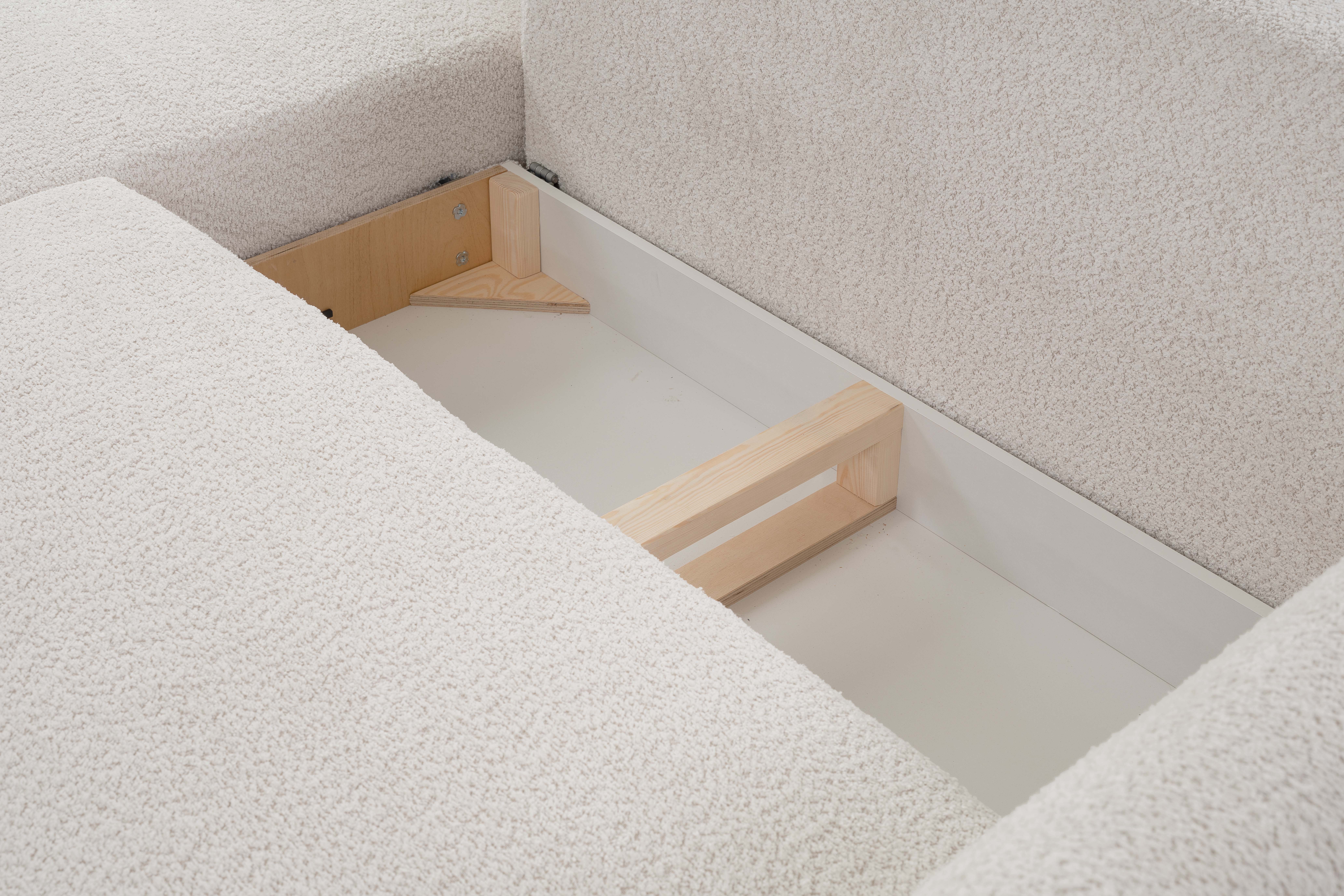 Wbudowany pojemnik na pościel (118,6 x 67 x 25,5 cm) pozwala na przechowywanie pościeli i utrzymanie porządku w pomieszczeniu.