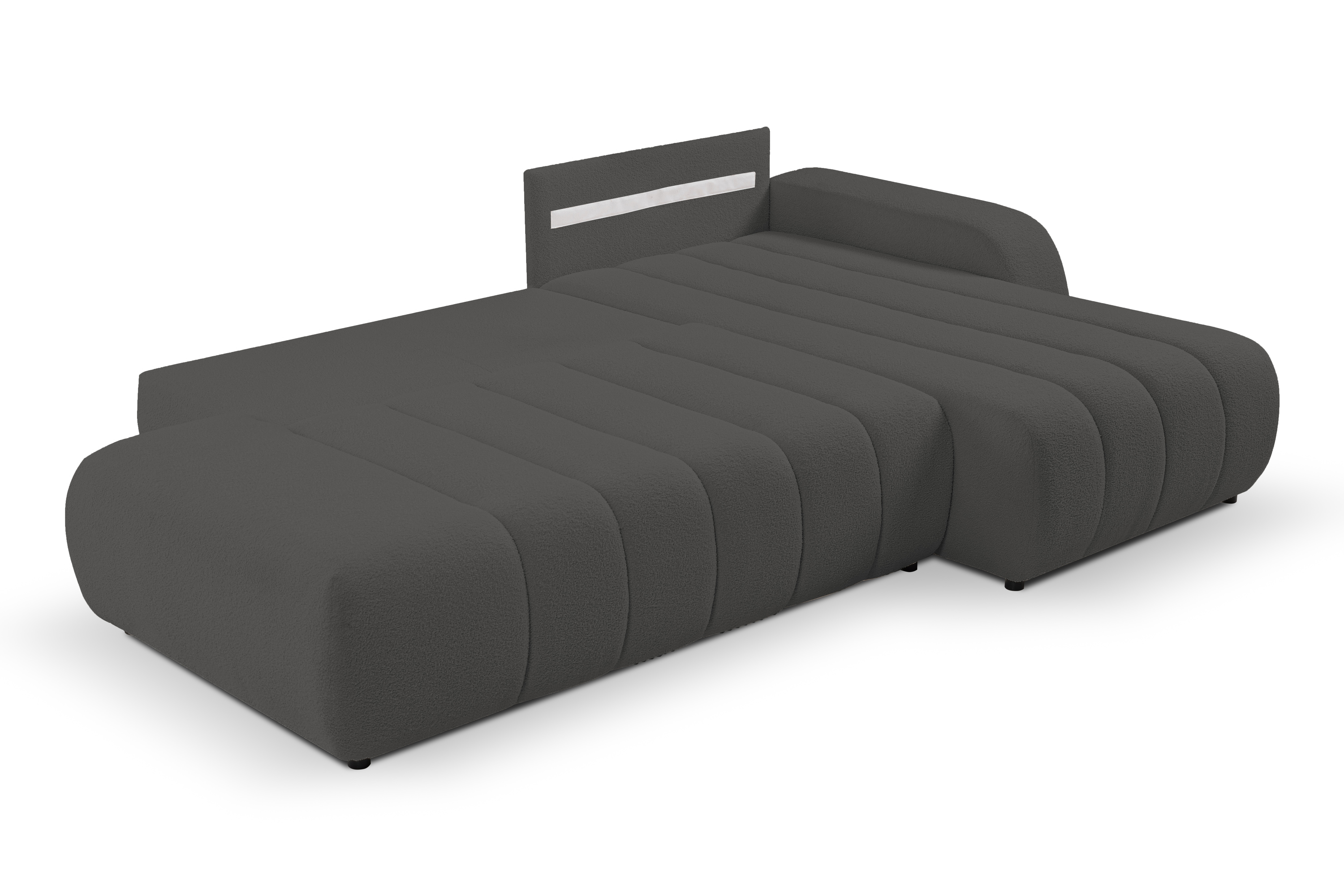 Funkcja spania umożliwia szybkie przekształcenie narożnika w wygodne miejsce do odpoczynku, a pojemnik na pościel pozwala na praktyczne przechowywanie kołder i poduszek.