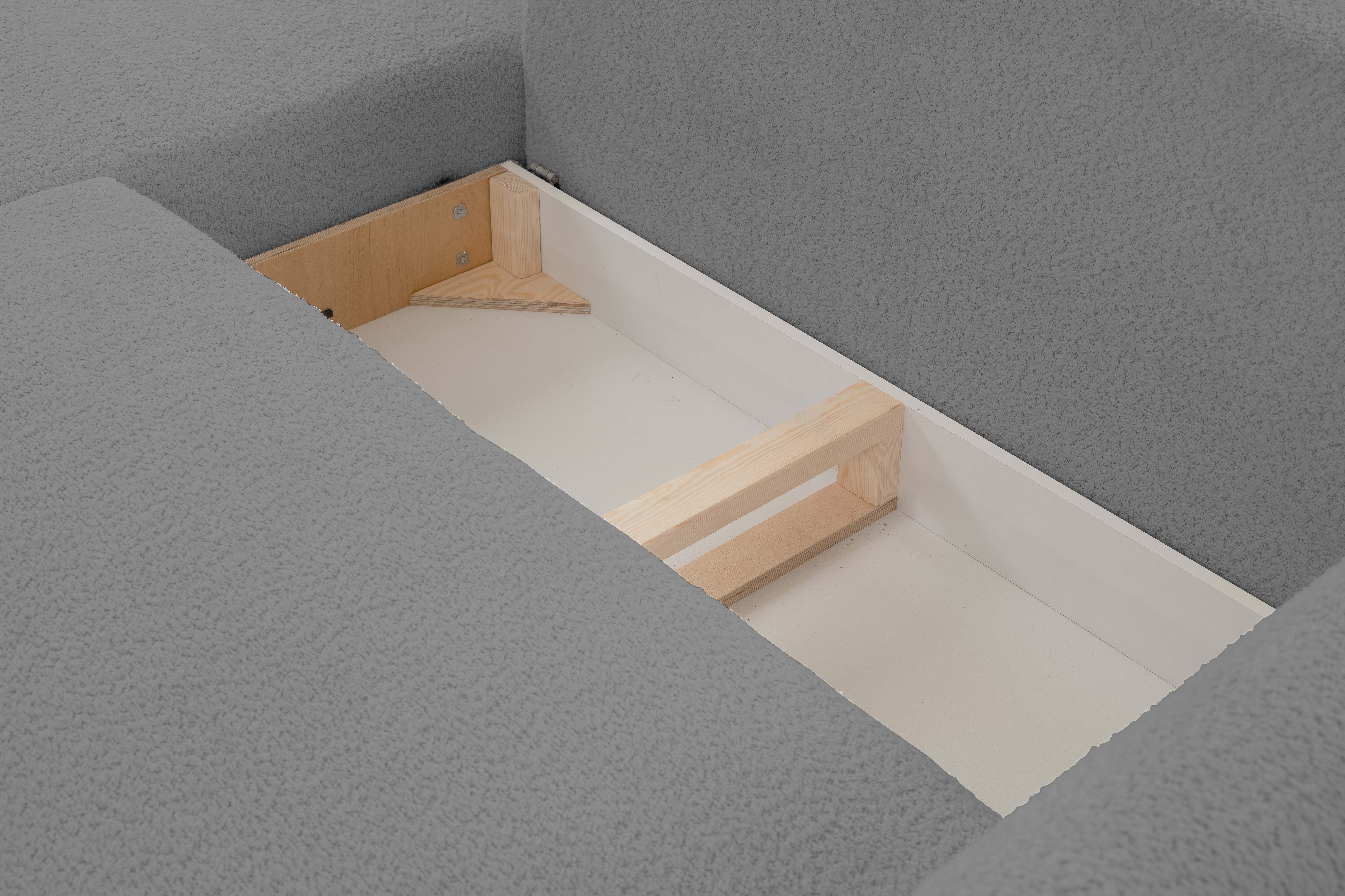 Wbudowany pojemnik na pościel (118,6 x 67 x 25,5 cm) pozwala na przechowywanie pościeli i utrzymanie porządku w pomieszczeniu.