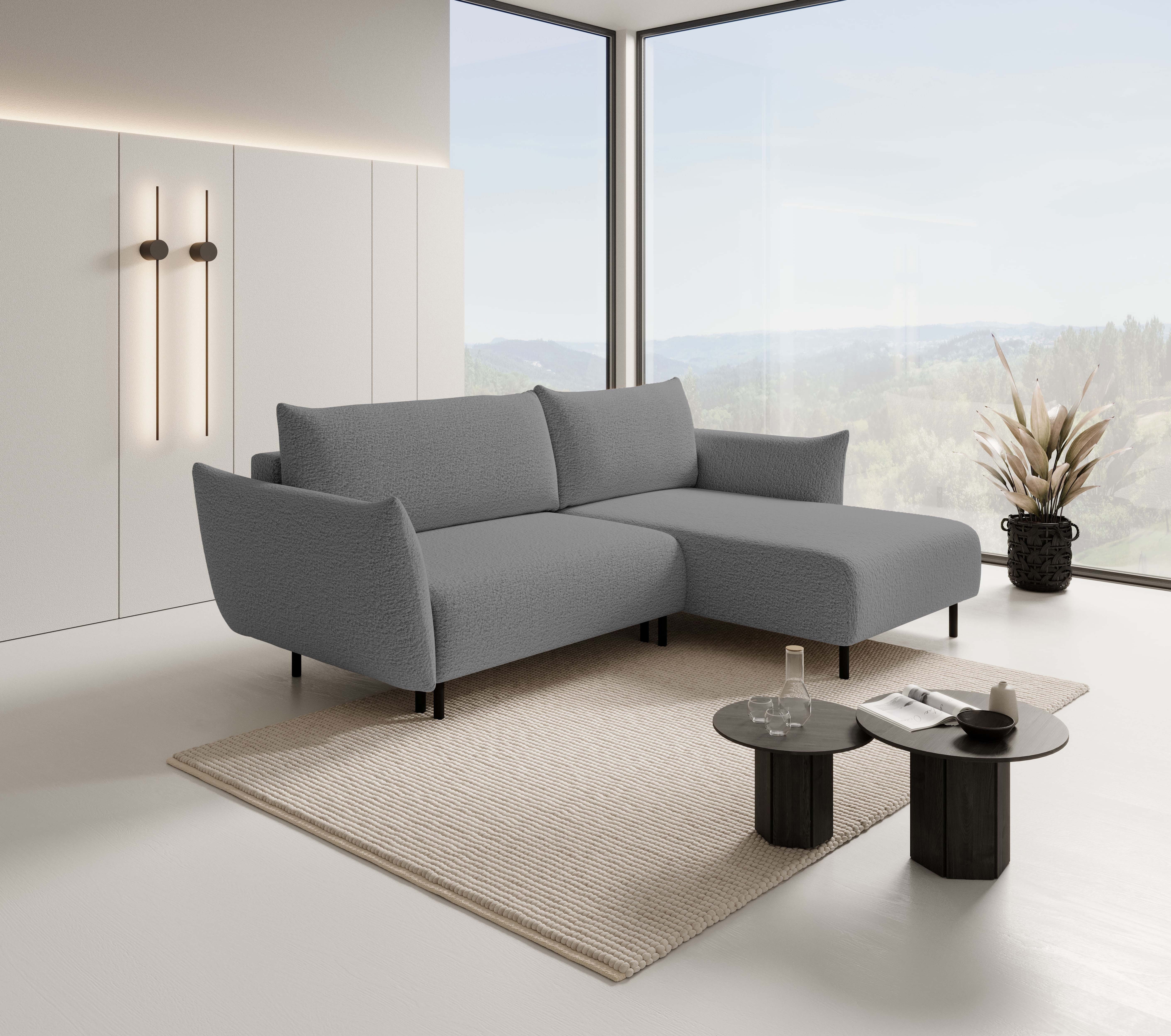 Narożnik ADEL oferuje praktyczną funkcję spania z powierzchnią do spania o wymiarach 145 x 212 cm, zapewniając komfort zarówno w dzień, jak i w nocy.