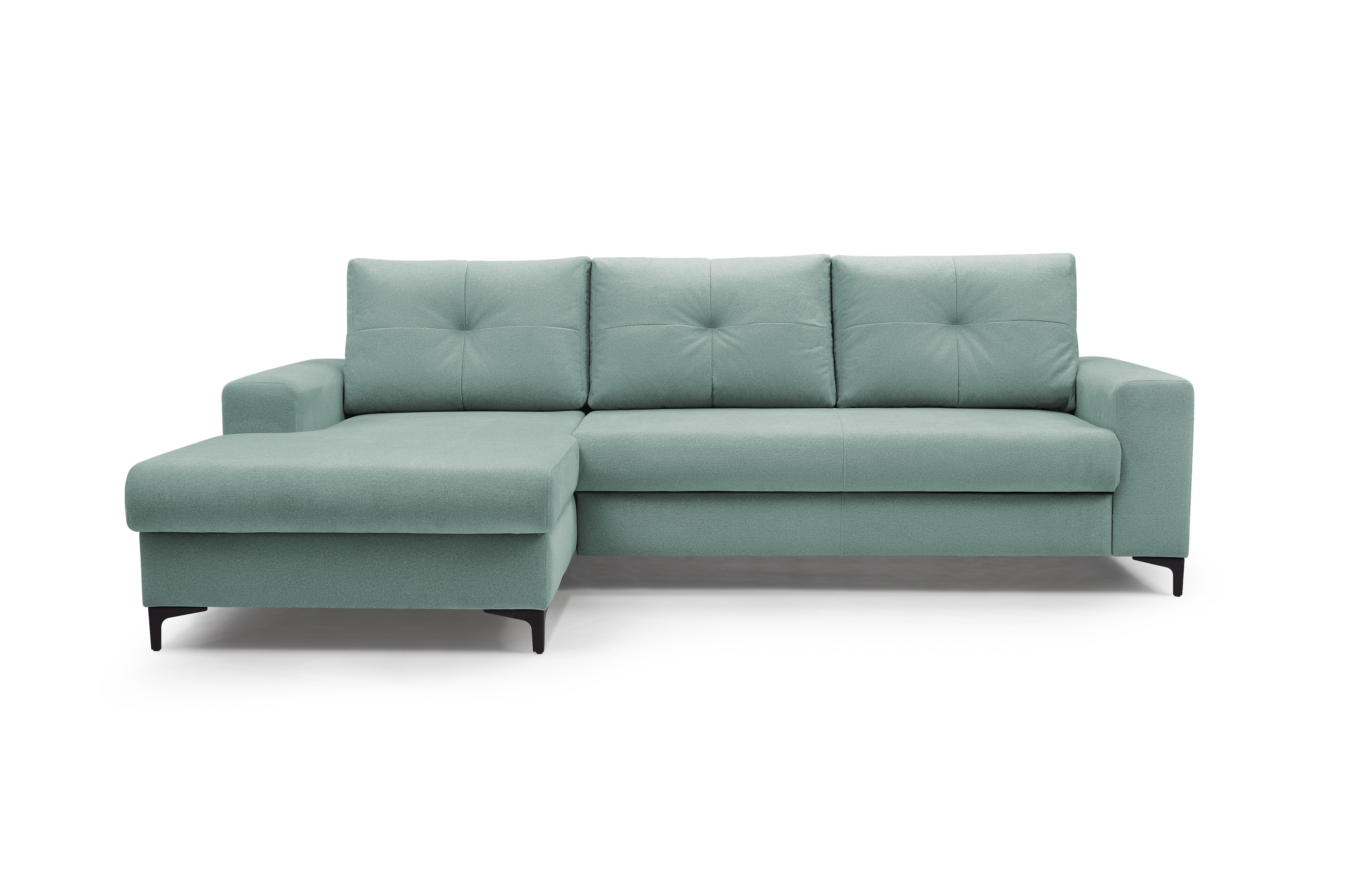 • AVRA oferuje nie tylko stylowy wygląd, ale i praktyczne rozwiązania. Dzięki funkcji spania szybko przekształcisz narożnik w wygodne łóżko, a wbudowany pojemnik na pościel pomaga utrzymać porządek w salonie.