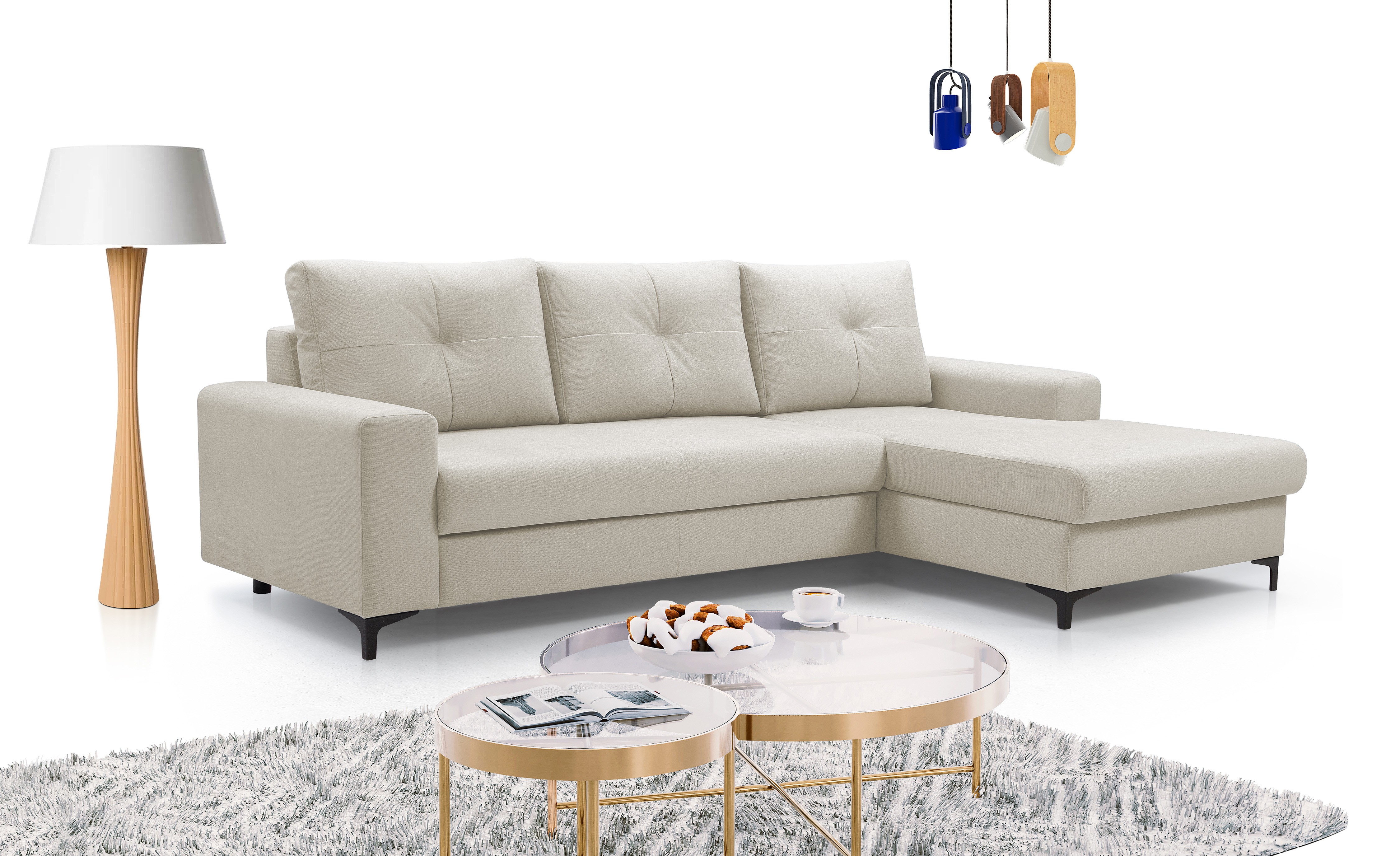 • AVRA oferuje nie tylko stylowy wygląd, ale i praktyczne rozwiązania. Dzięki funkcji spania szybko przekształcisz narożnik w wygodne łóżko, a wbudowany pojemnik na pościel pomaga utrzymać porządek w salonie.