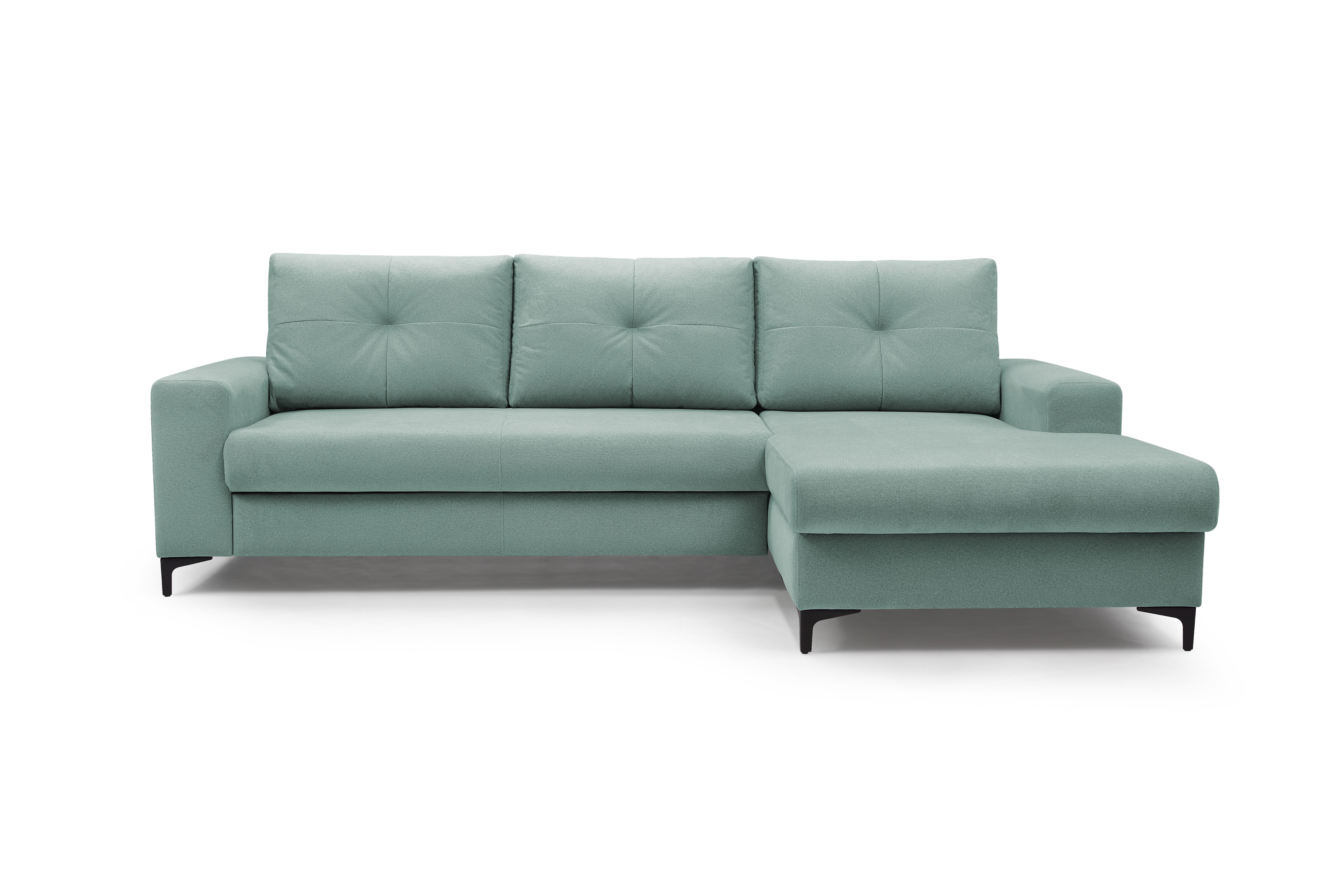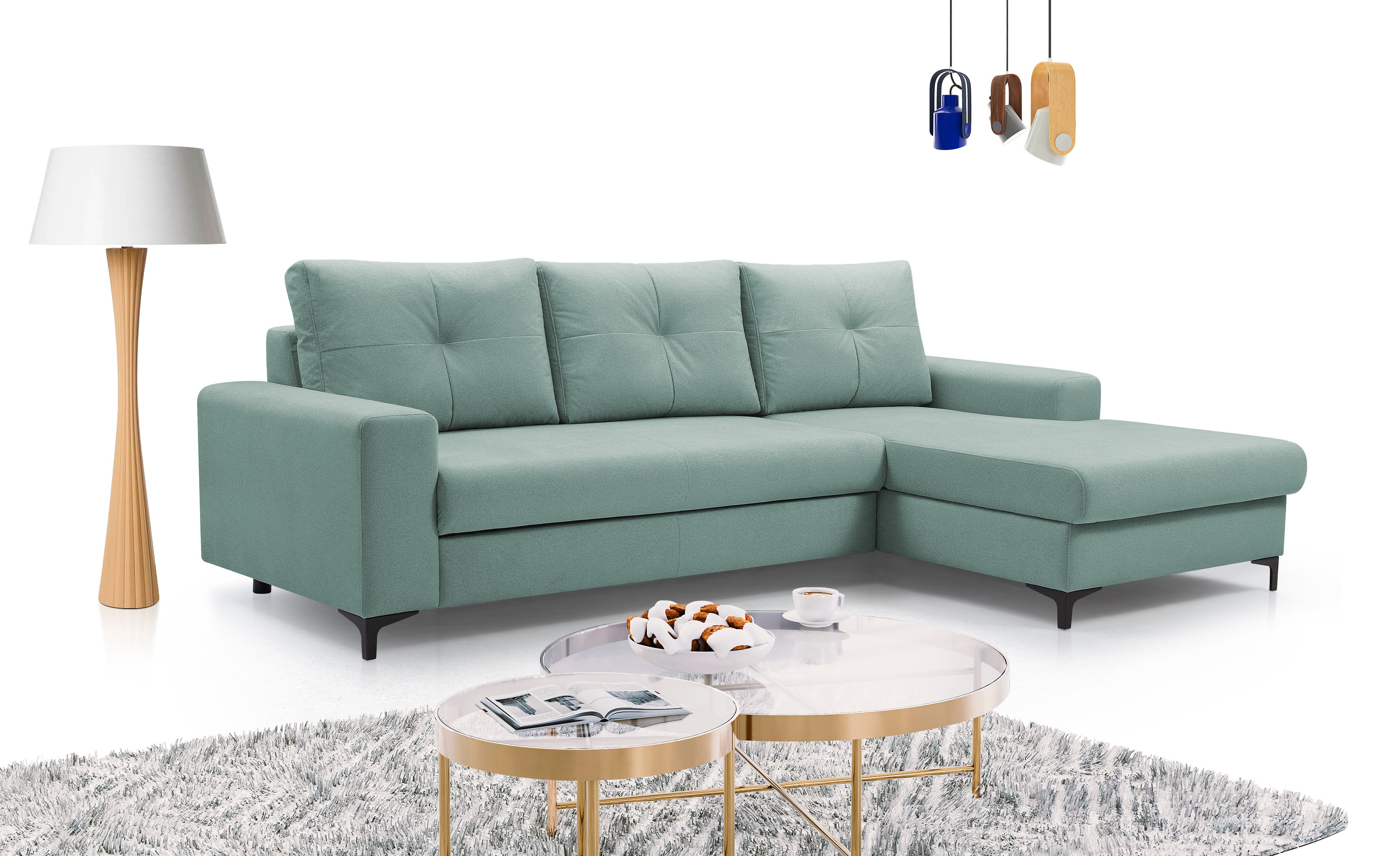 • AVRA oferuje nie tylko stylowy wygląd, ale i praktyczne rozwiązania. Dzięki funkcji spania szybko przekształcisz narożnik w wygodne łóżko, a wbudowany pojemnik na pościel pomaga utrzymać porządek w salonie.