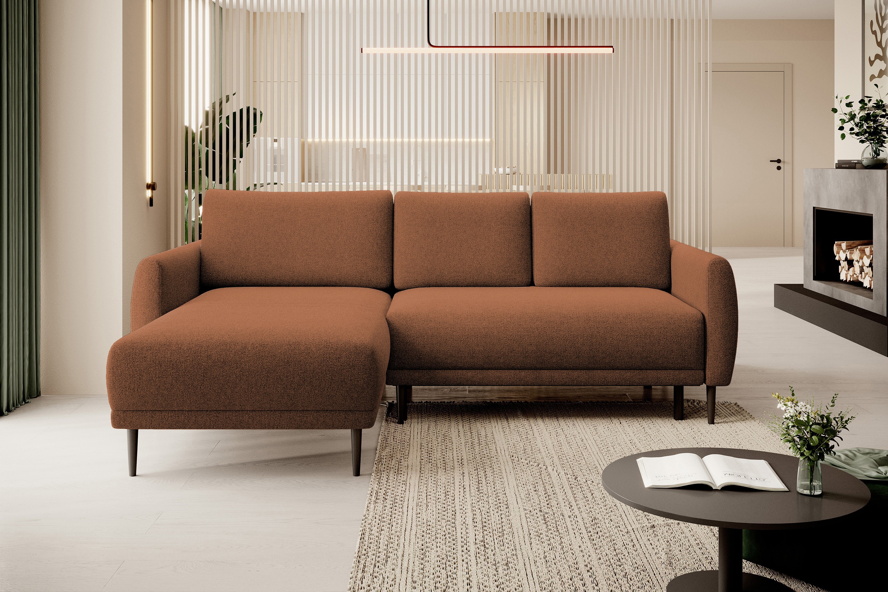 ✔ Wolnostojący narożnik z tapicerowanym tyłem