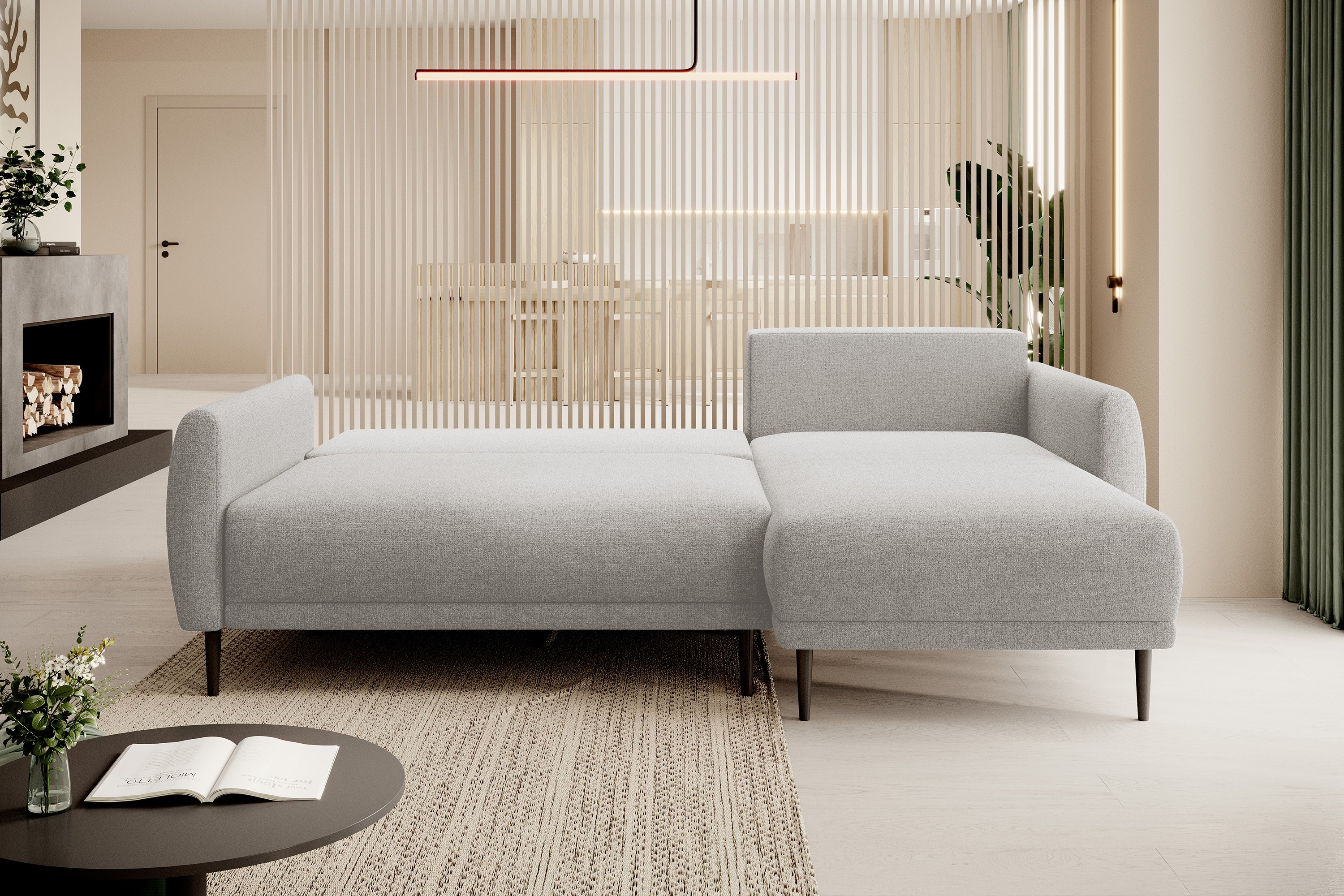 Narożnik BONO z funkcją spania Drewniane nóżki Eleganckie podłokietniki Głębokie siedzisko Prawa strona Barrel 21