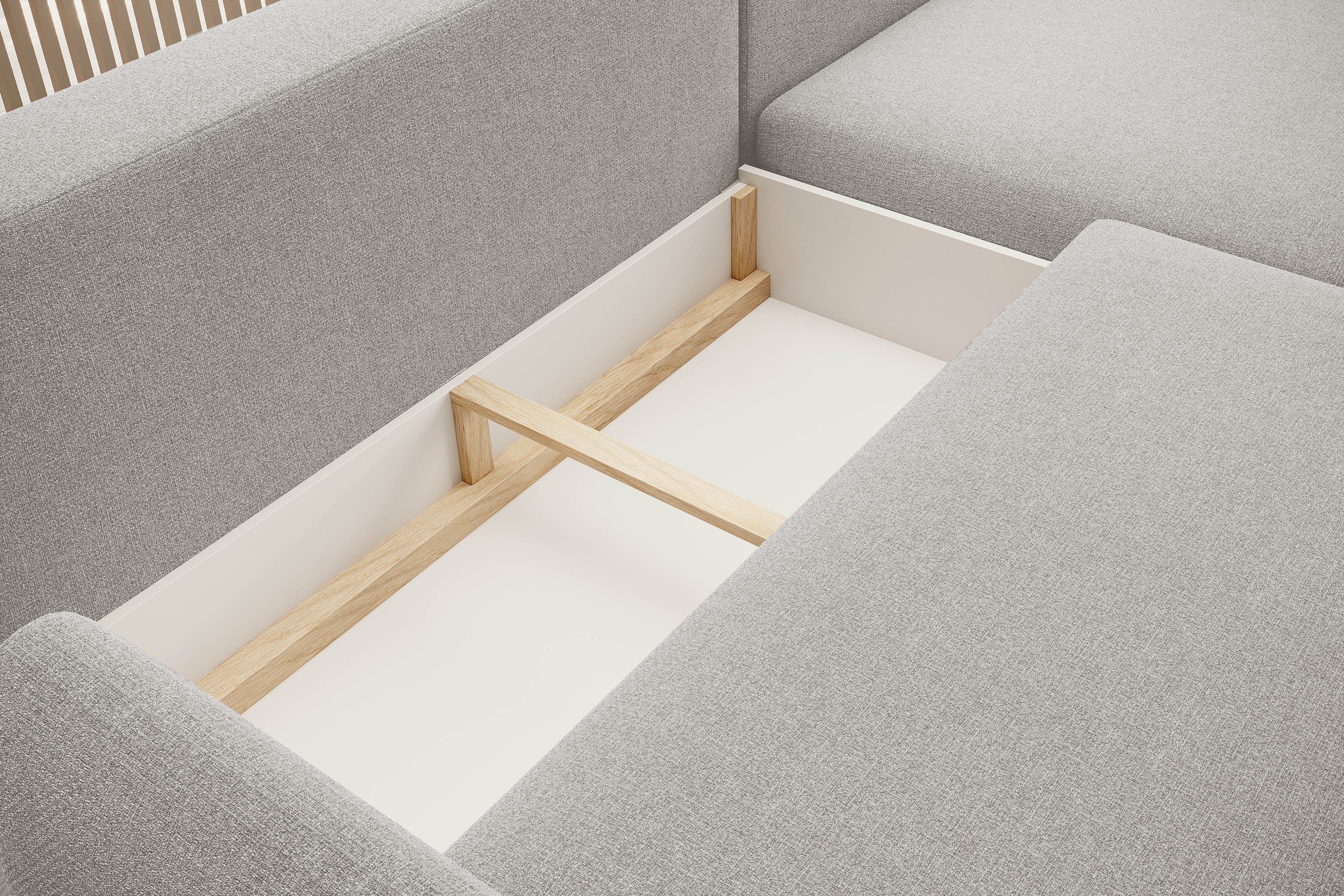 Narożnik BONO z funkcją spania Drewniane nóżki Eleganckie podłokietniki Głębokie siedzisko Prawa strona Barrel 09