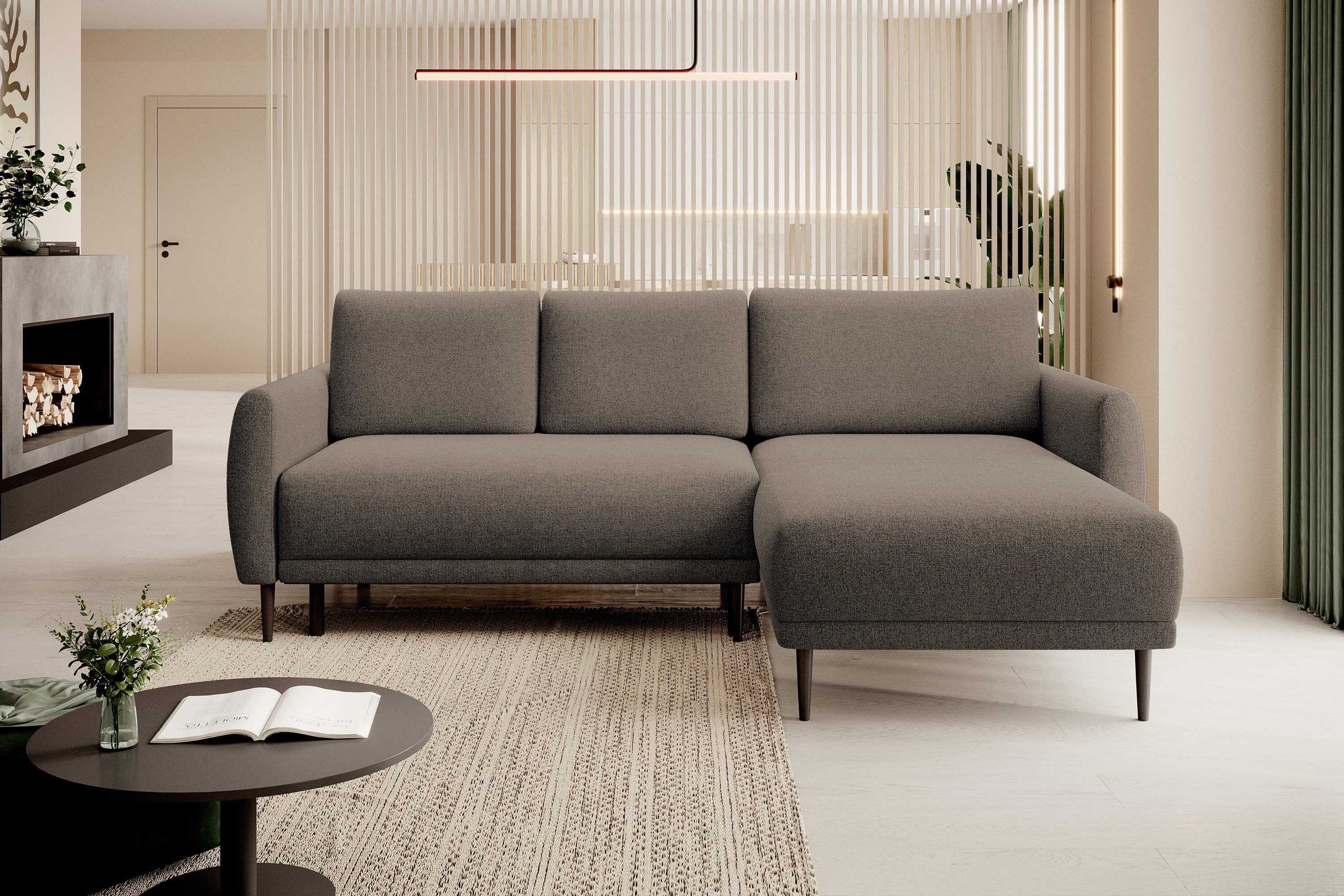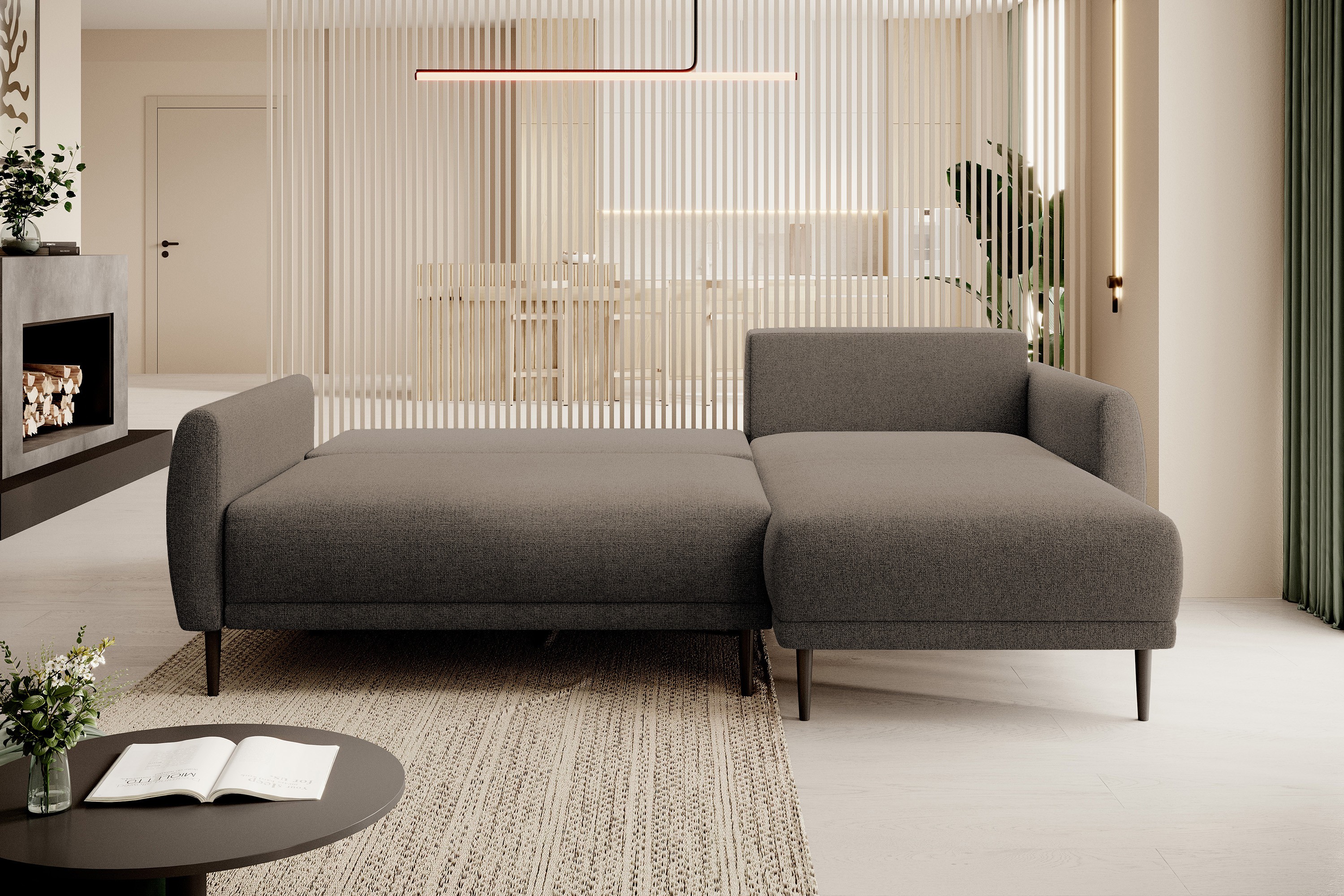 Narożnik BONO z funkcją spania Drewniane nóżki Eleganckie podłokietniki Głębokie siedzisko Prawa strona Barrel 21