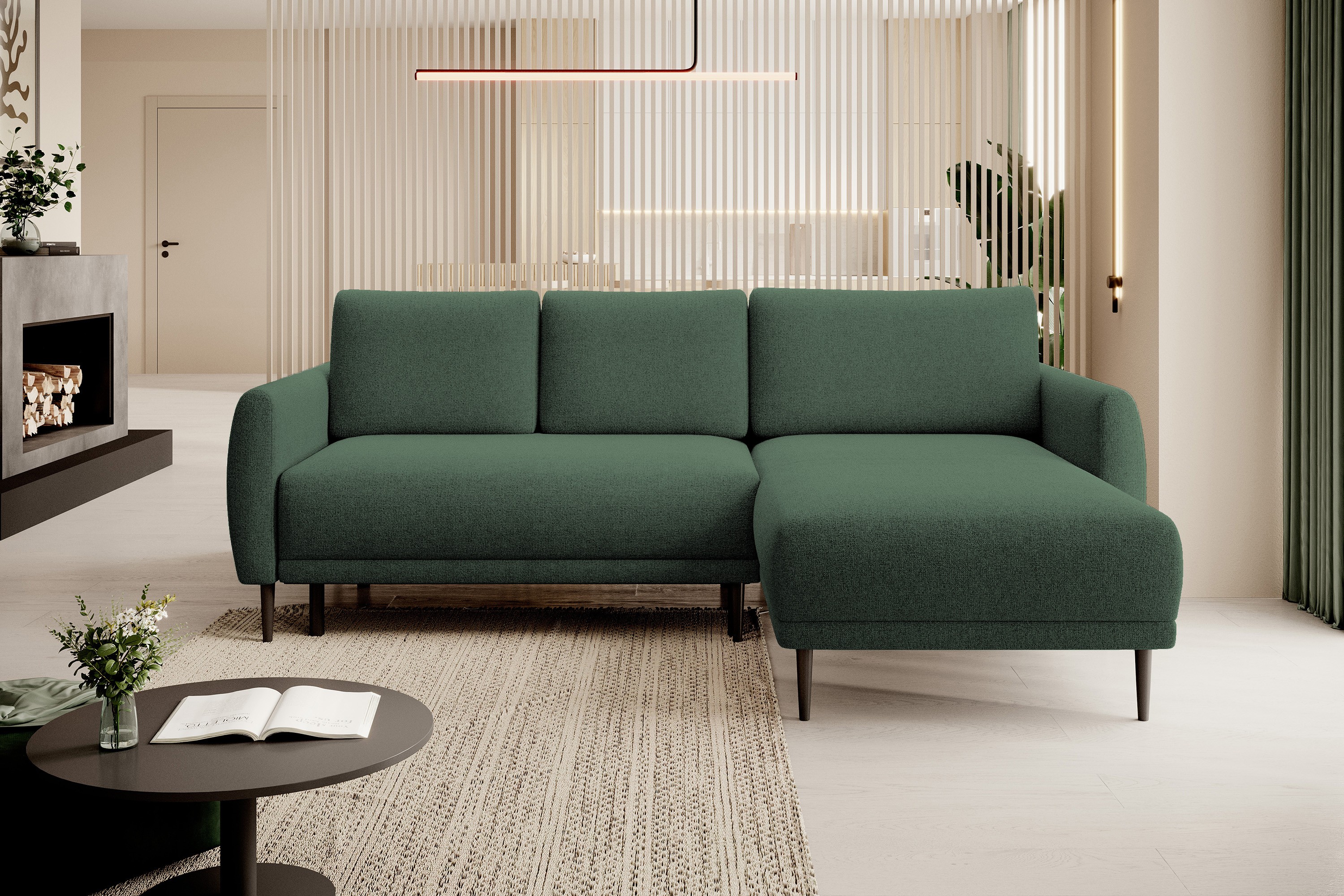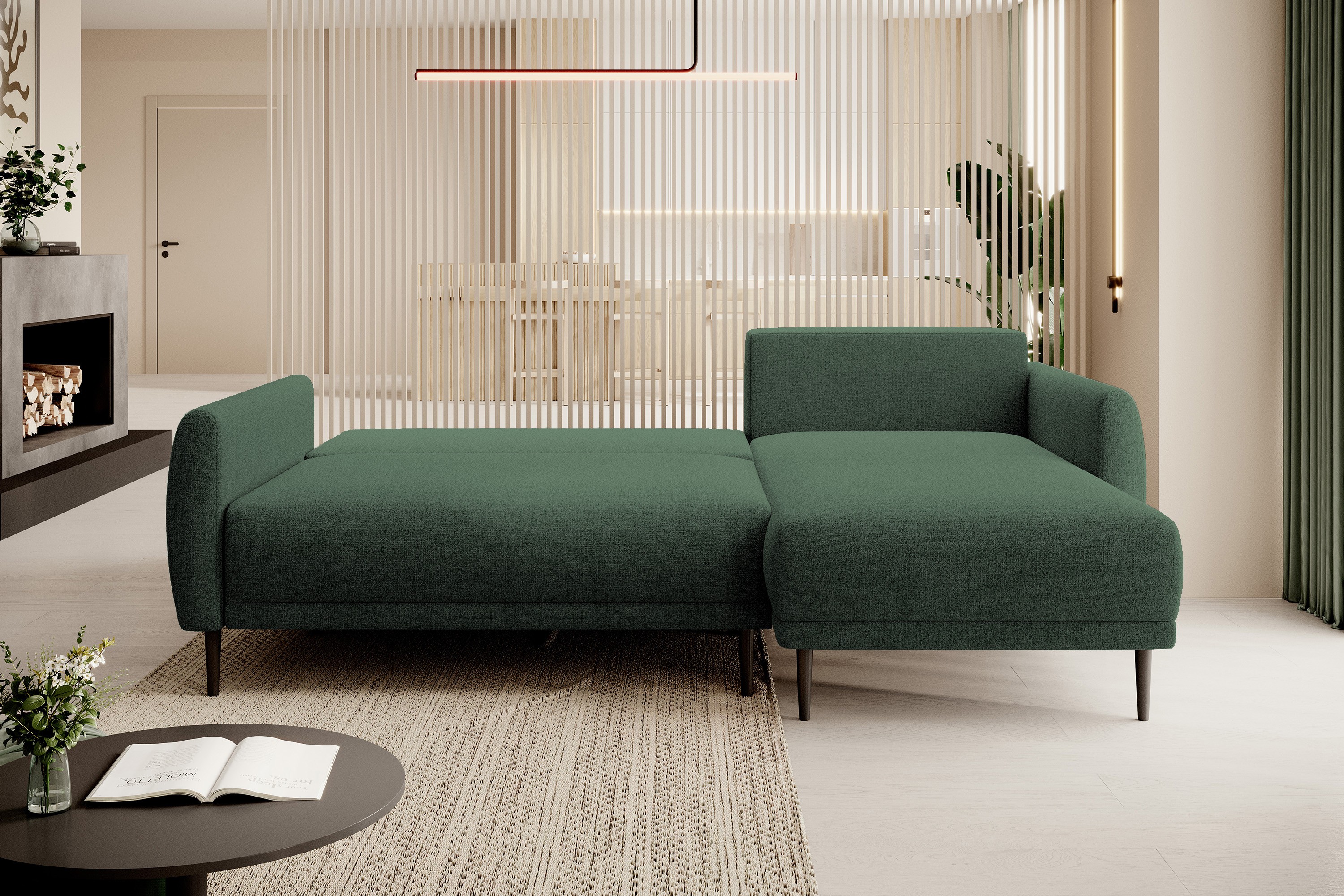 Narożnik BONO z funkcją spania Drewniane nóżki Eleganckie podłokietniki Głębokie siedzisko Prawa strona Barrel 37
