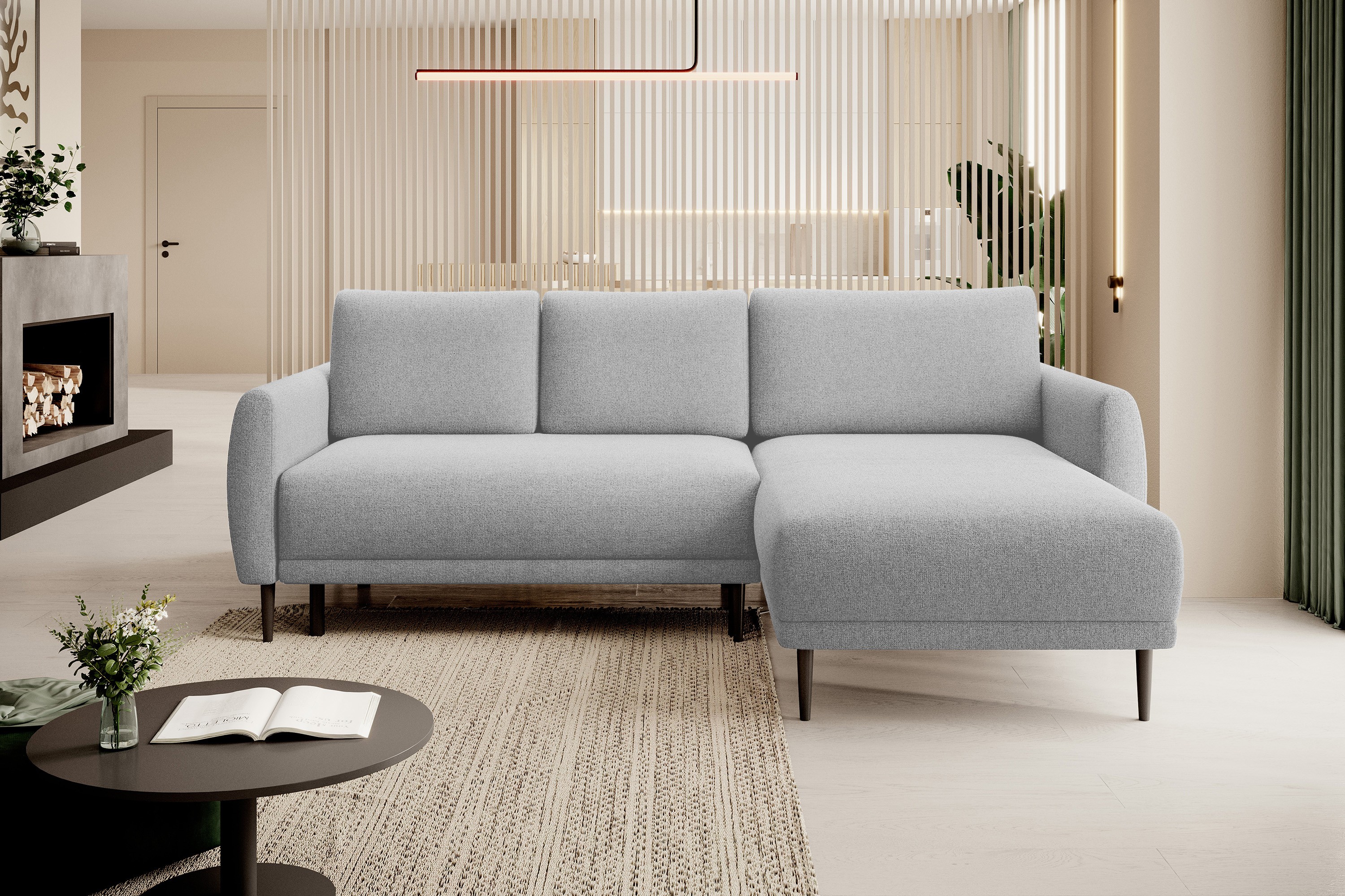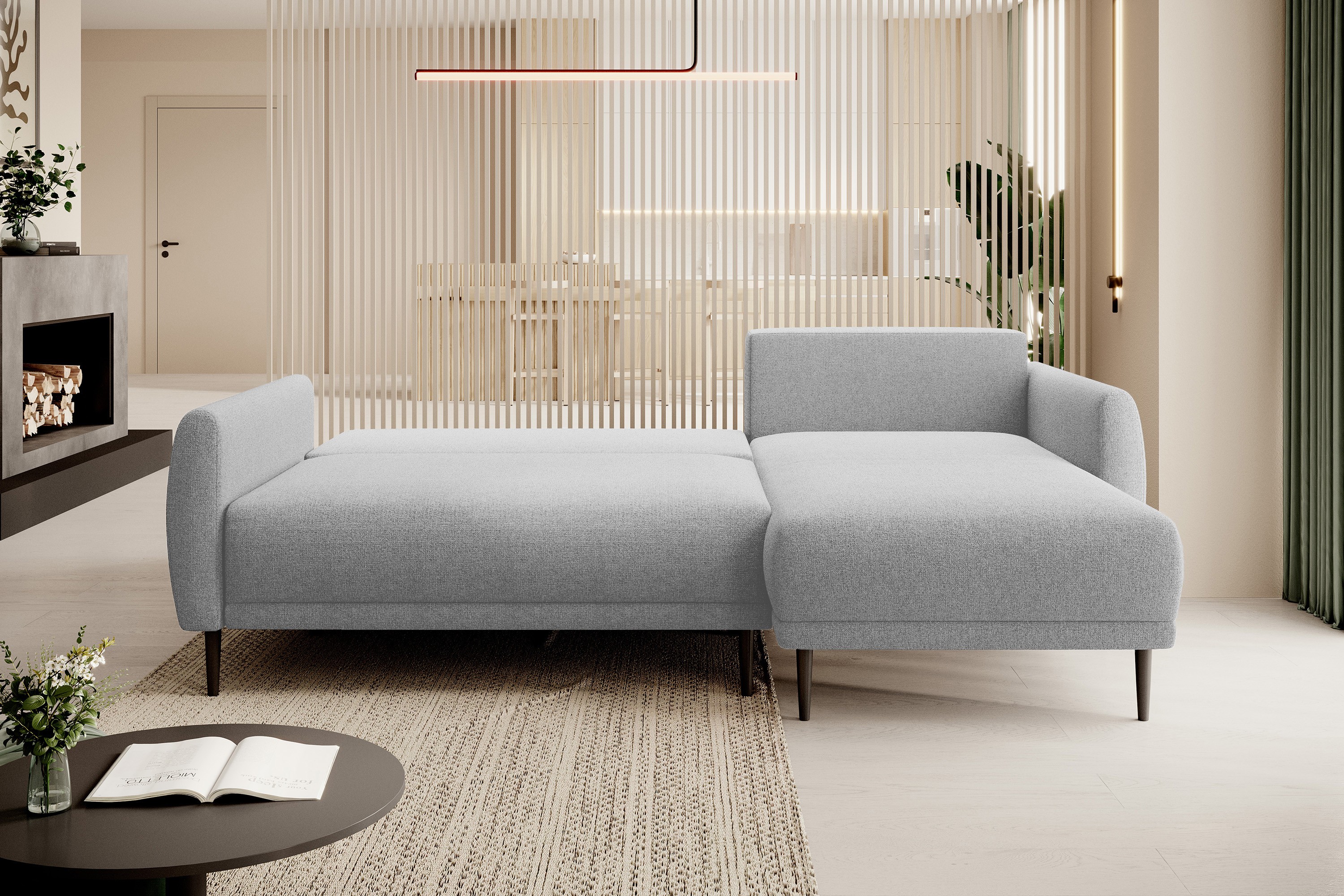 Narożnik BONO z funkcją spania Drewniane nóżki Eleganckie podłokietniki Głębokie siedzisko Prawa strona Barrel 21