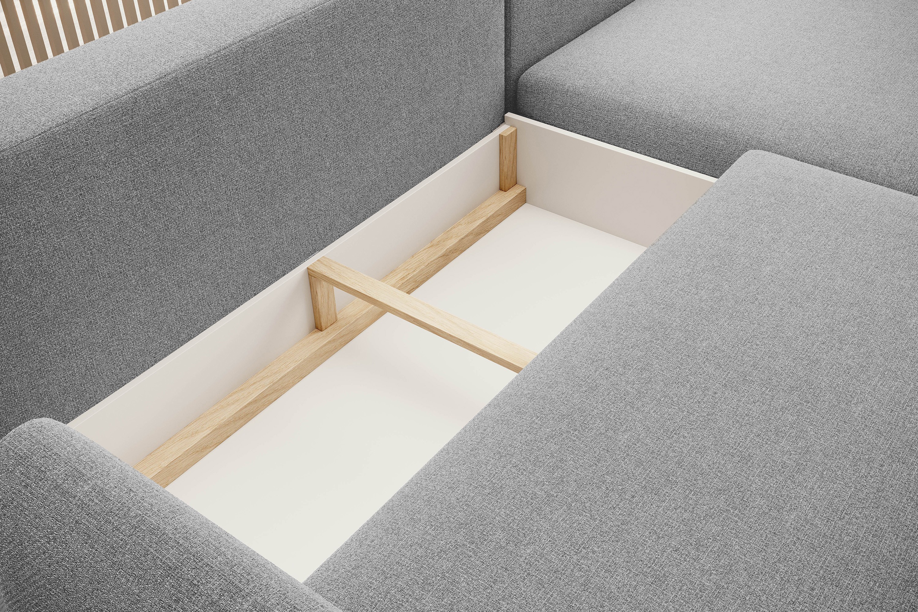 Narożnik BONO z funkcją spania Drewniane nóżki Eleganckie podłokietniki Głębokie siedzisko Prawa strona Barrel 09