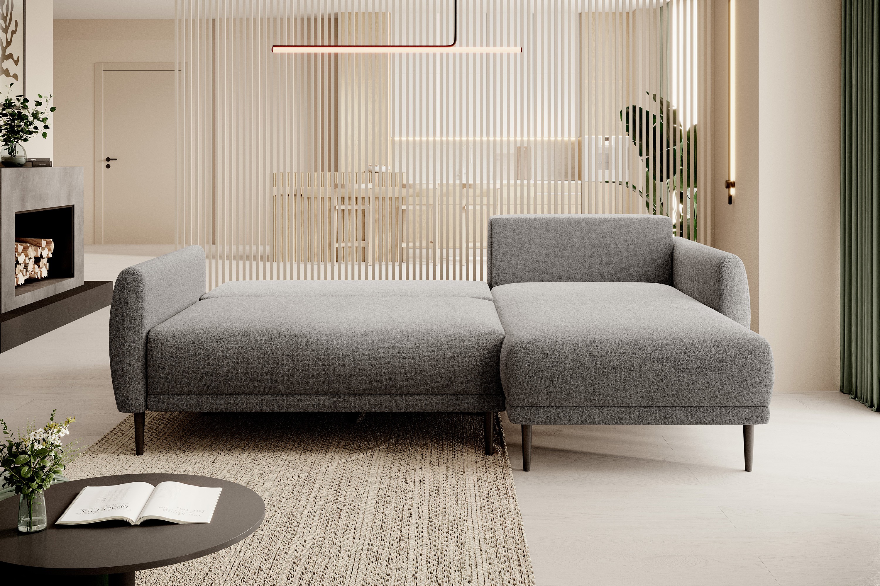 Narożnik BONO z funkcją spania Drewniane nóżki Eleganckie podłokietniki Głębokie siedzisko Prawa strona Barrel 21
