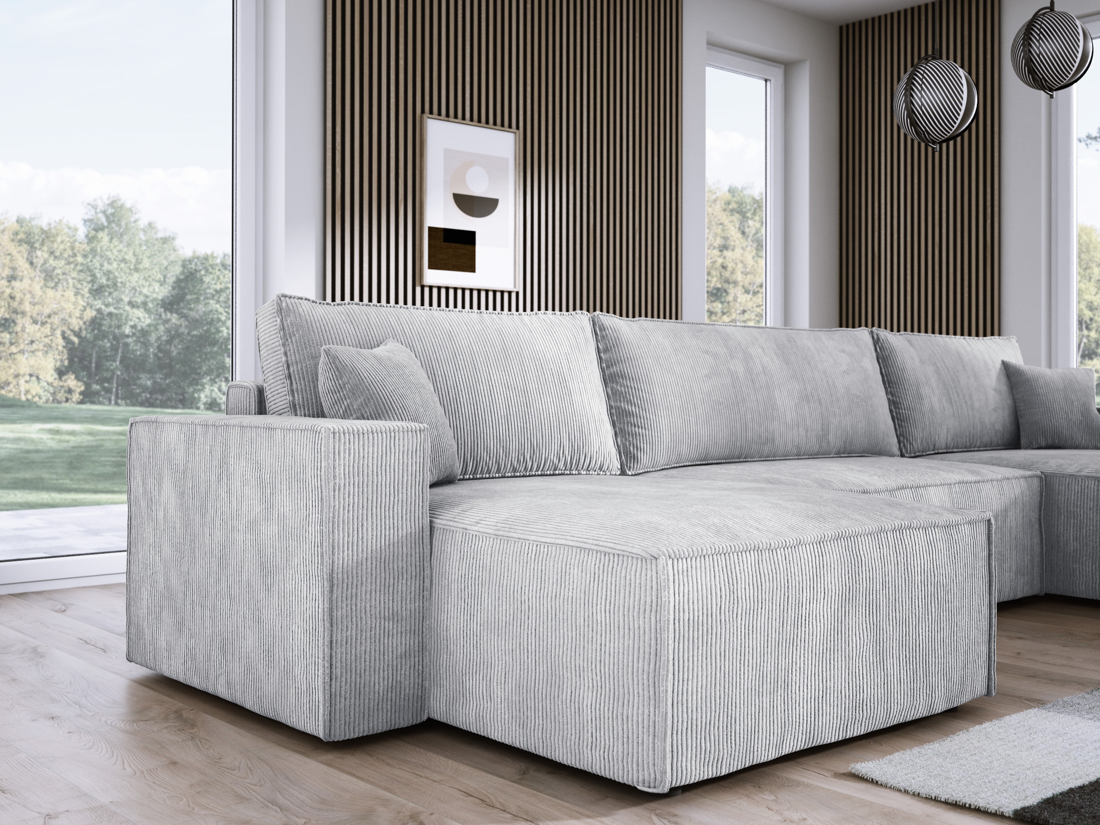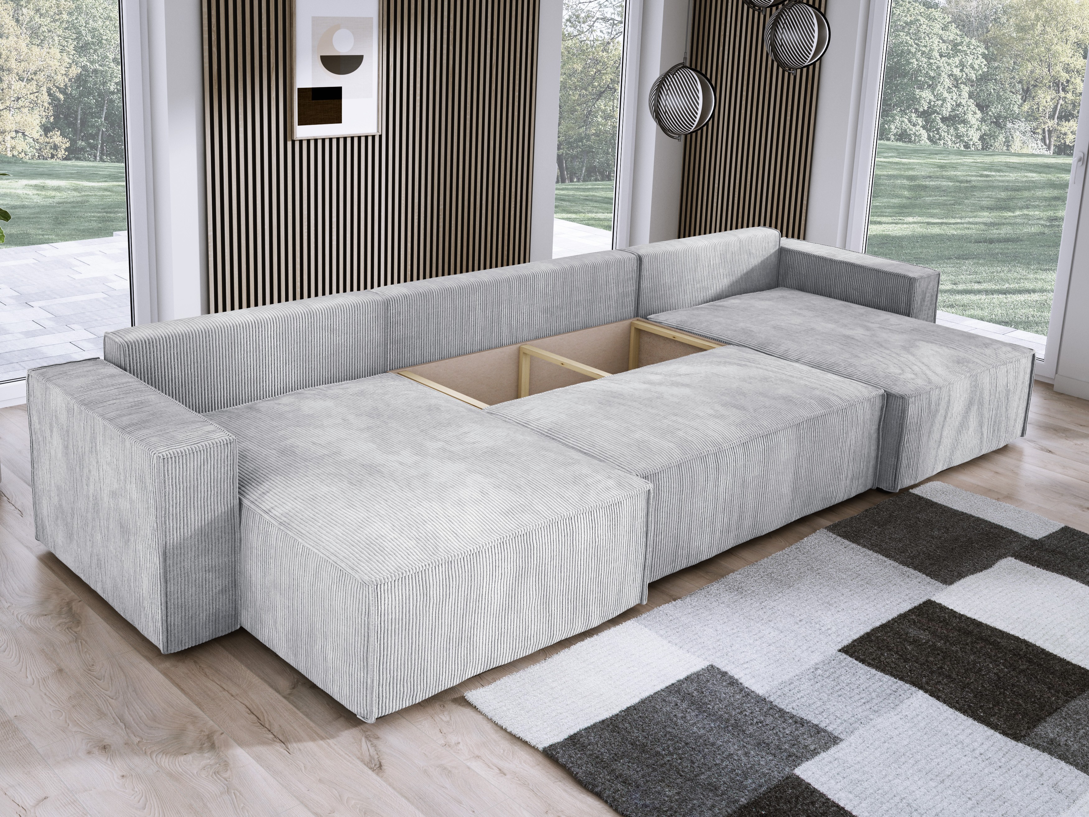 Nowoczesna tkanina sztruksowa jest odporna na ścieranie i przyjemna w dotyku, dzięki czemu narożnik POSO U będzie nie tylko funkcjonalny, ale też przytulny i elegancki.