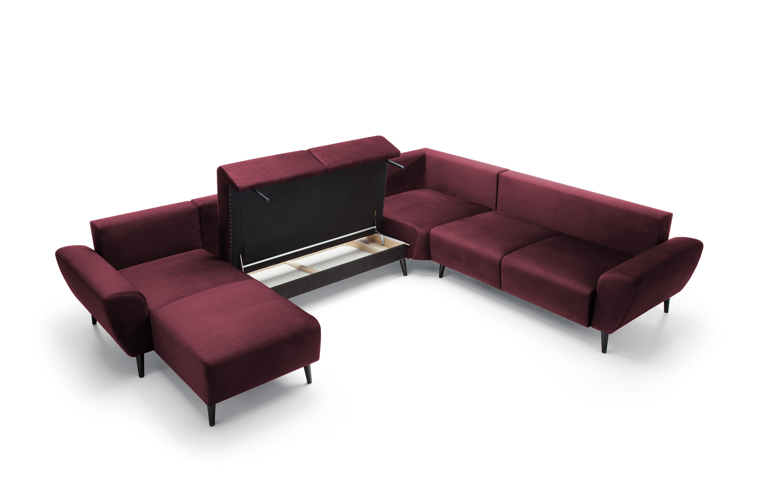 Dzięki dużej powierzchni użytkowej oraz funkcji spania narożnik BOSCO U świetnie sprawdzi się jako centrum codziennego relaksu i okazjonalne miejsce do spania.