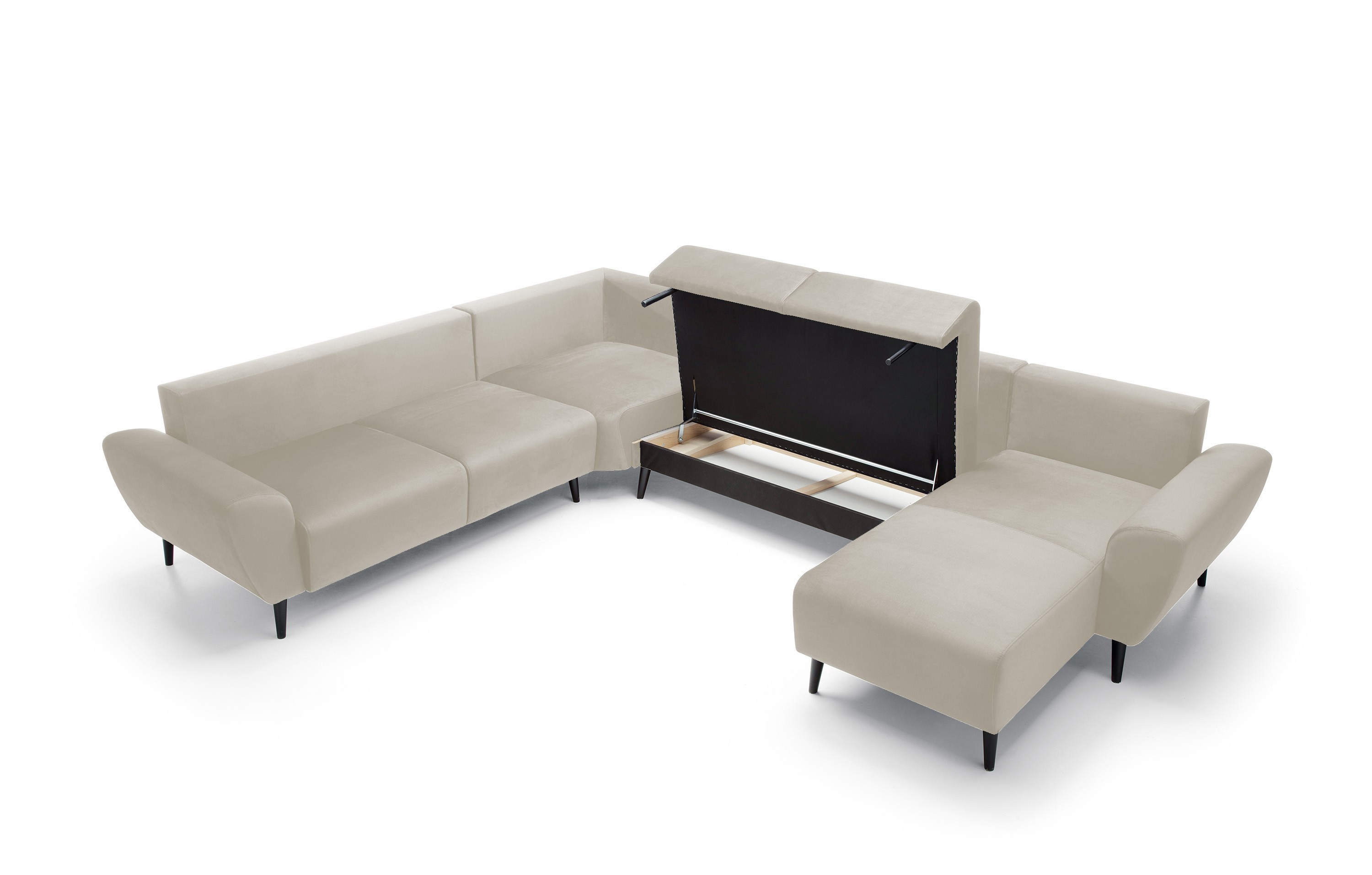 Eleganckie, wysokie nogi dodają narożnikowi lekkości i nowoczesnego wyglądu.
