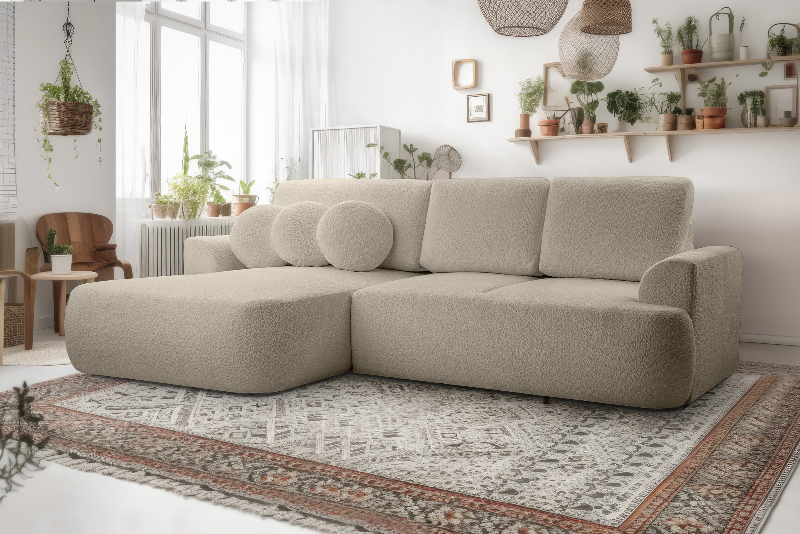 Narożnik VELO wolnostojący układ L strona Lewa z funkcją spania w tkaninie Coral 60