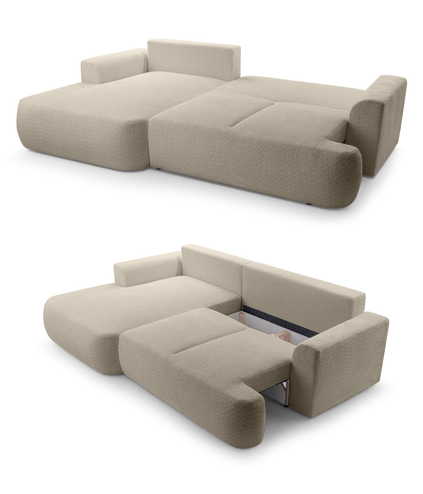 Nowoczesny narożnik VELO – funkcja spania + pojemnik na pościel