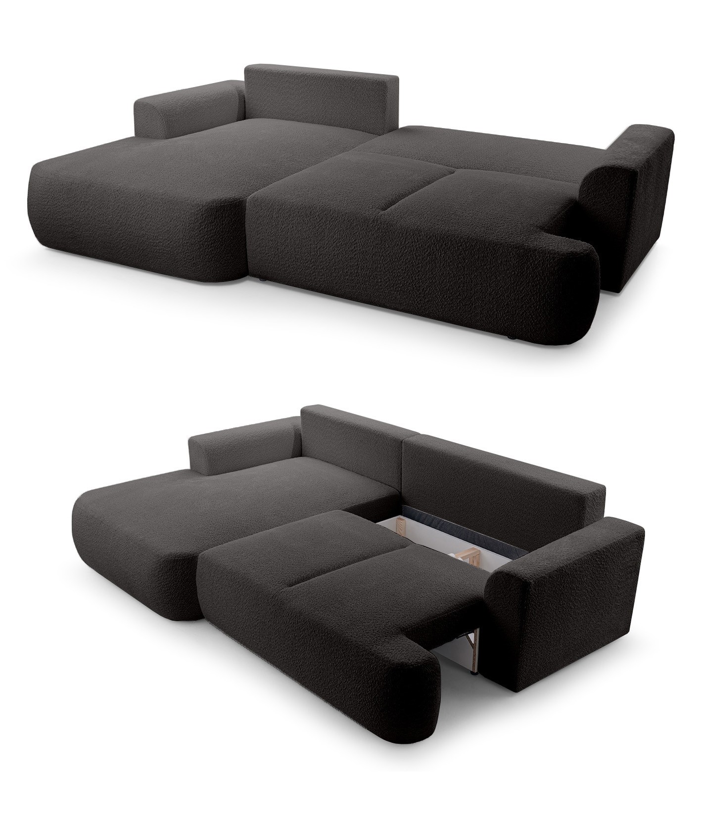 Nowoczesny narożnik VELO – funkcja spania + pojemnik na pościel