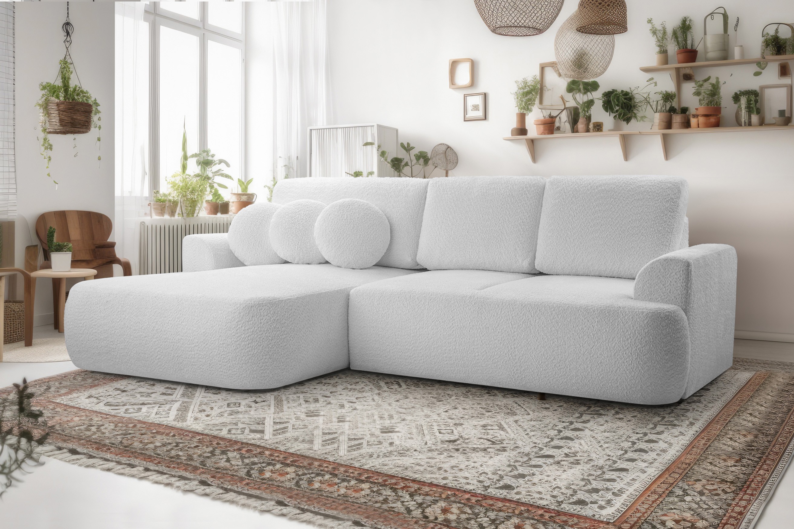 Narożnik VELO wolnostojący układ L strona Lewa z funkcją spania w tkaninie Coral 60