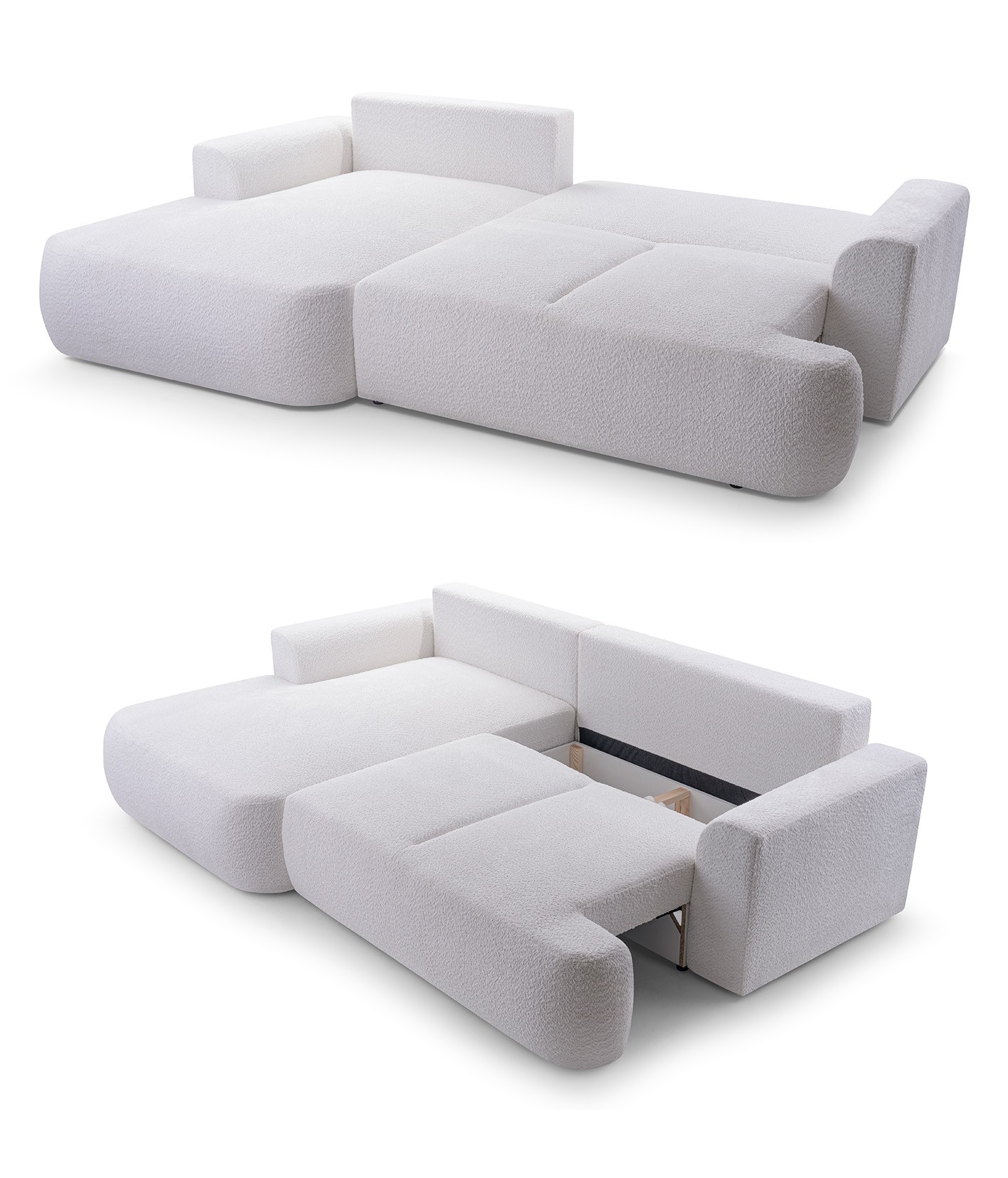 Nowoczesny narożnik VELO – funkcja spania + pojemnik na pościel