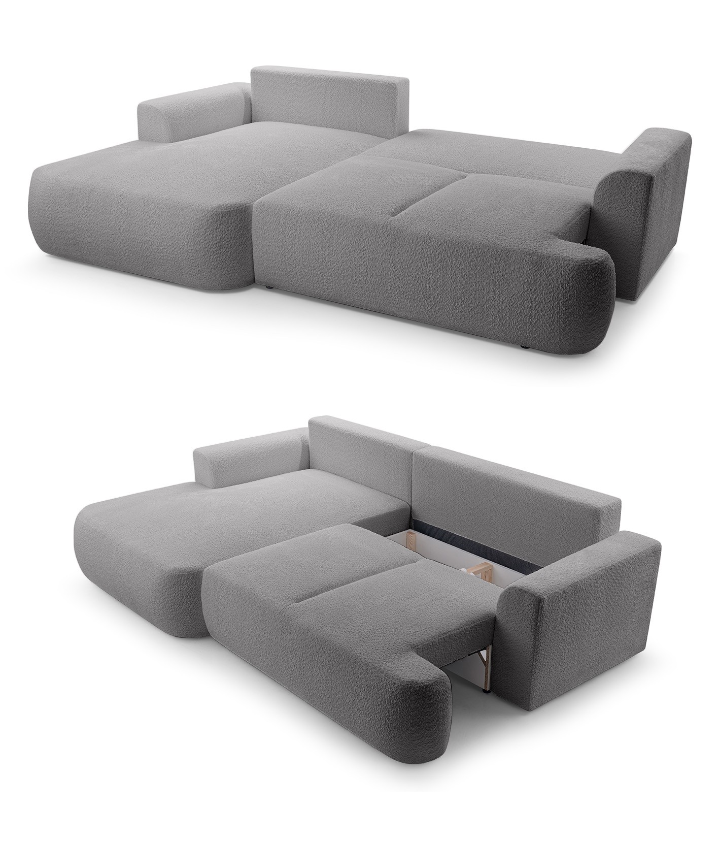 Nowoczesny narożnik VELO – funkcja spania + pojemnik na pościel