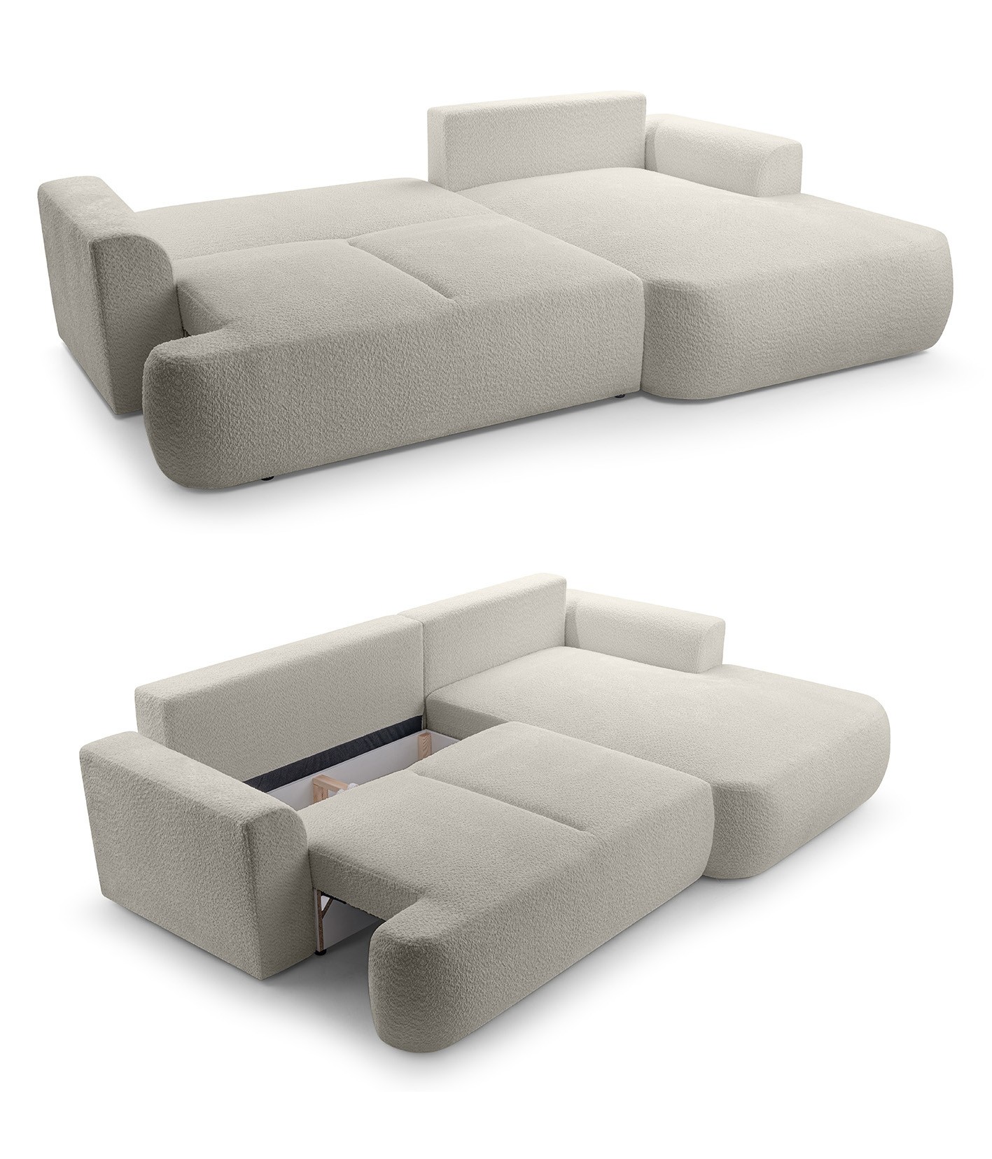 Nowoczesny narożnik VELO – funkcja spania + pojemnik na pościel