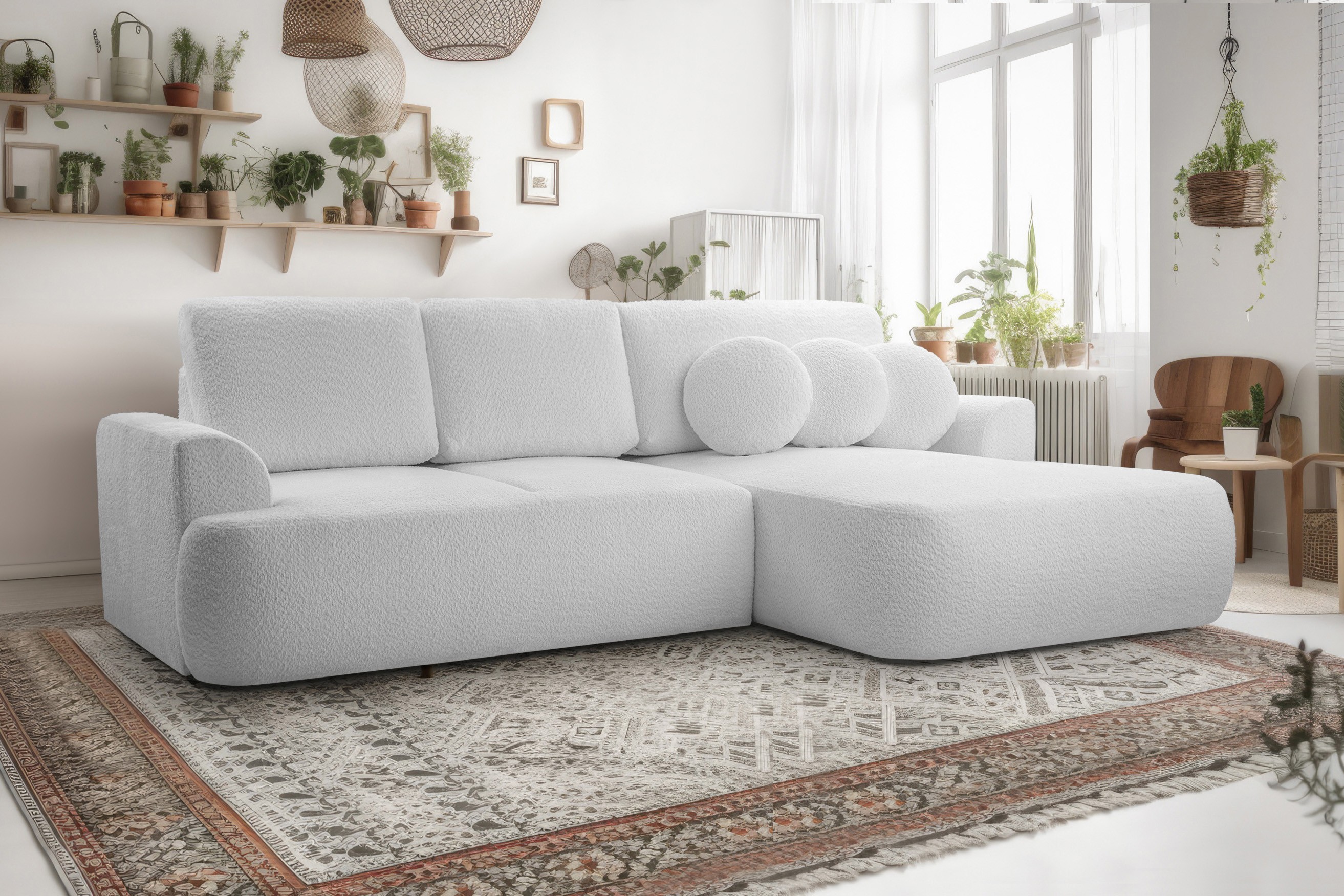 Narożnik VELO wolnostojący układ L strona Prawa z funkcją spania w tkaninie Coral 50