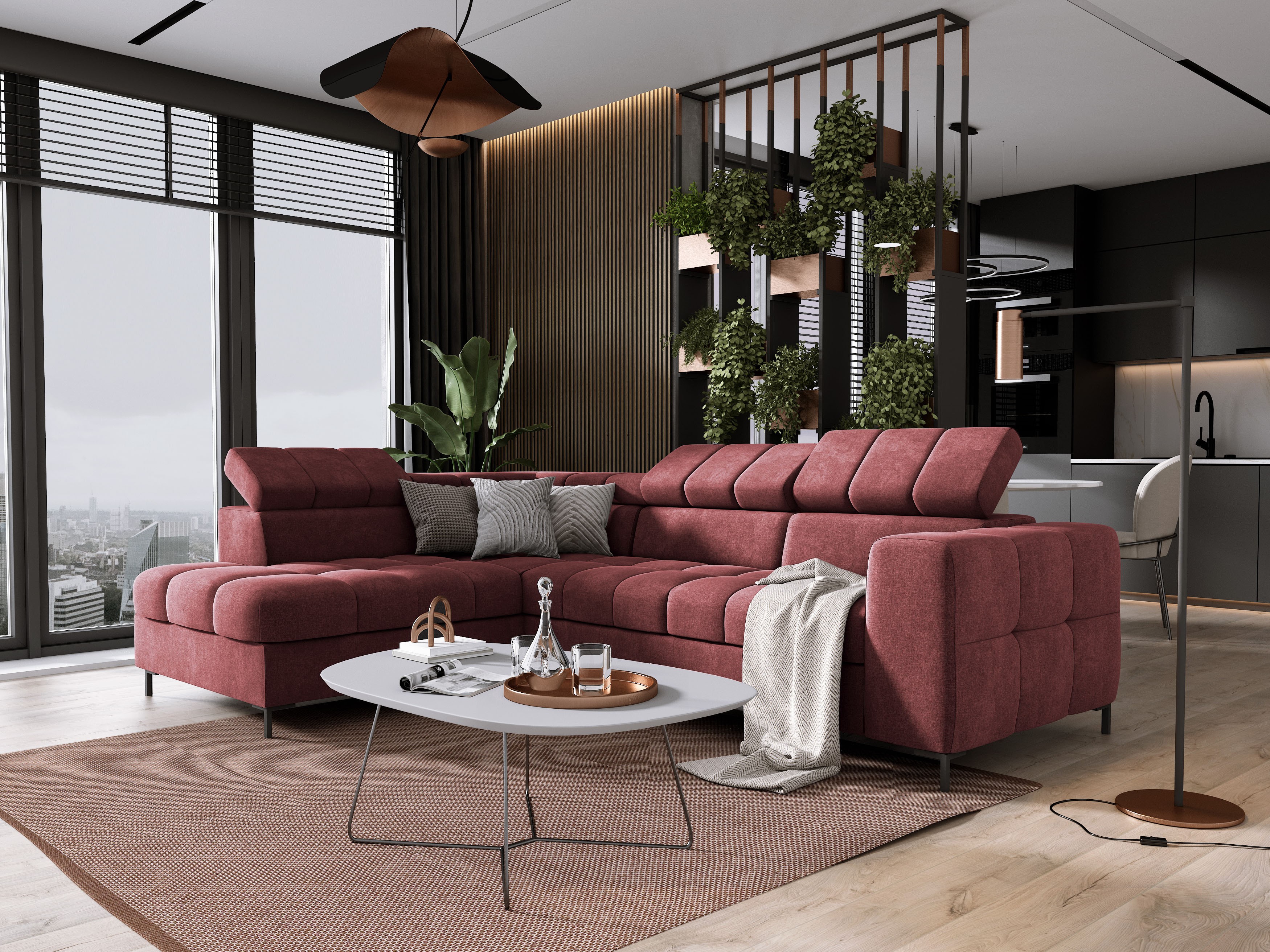 Narożnik PABLOS układ L strona Lewa w tkaninie VOGUE 08 regulowane zagłówki z funkcją spania