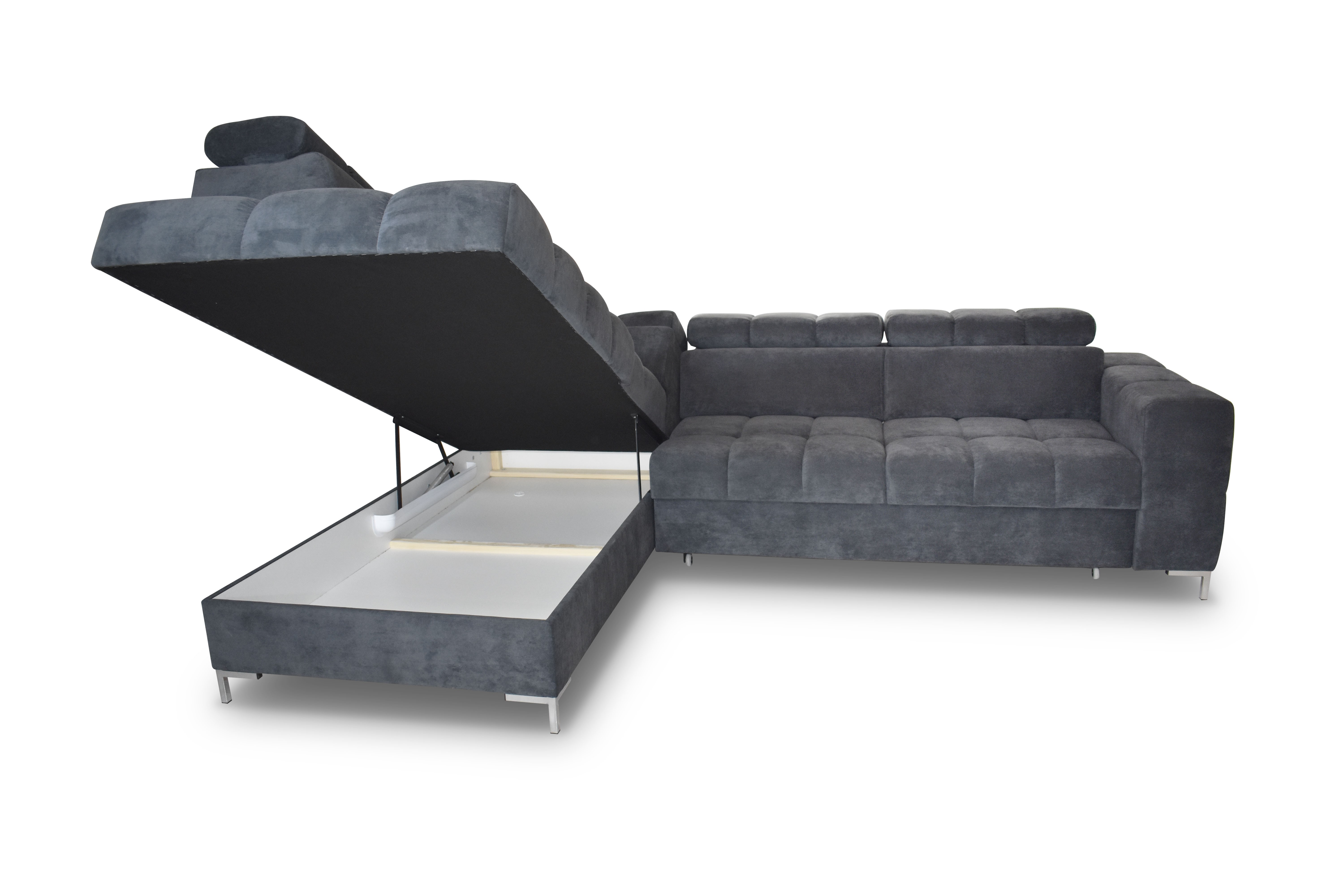 Narożnik PABLOS układ L strona Lewa w tkaninie VOGUE 06 regulowane zagłówki z funkcją spania