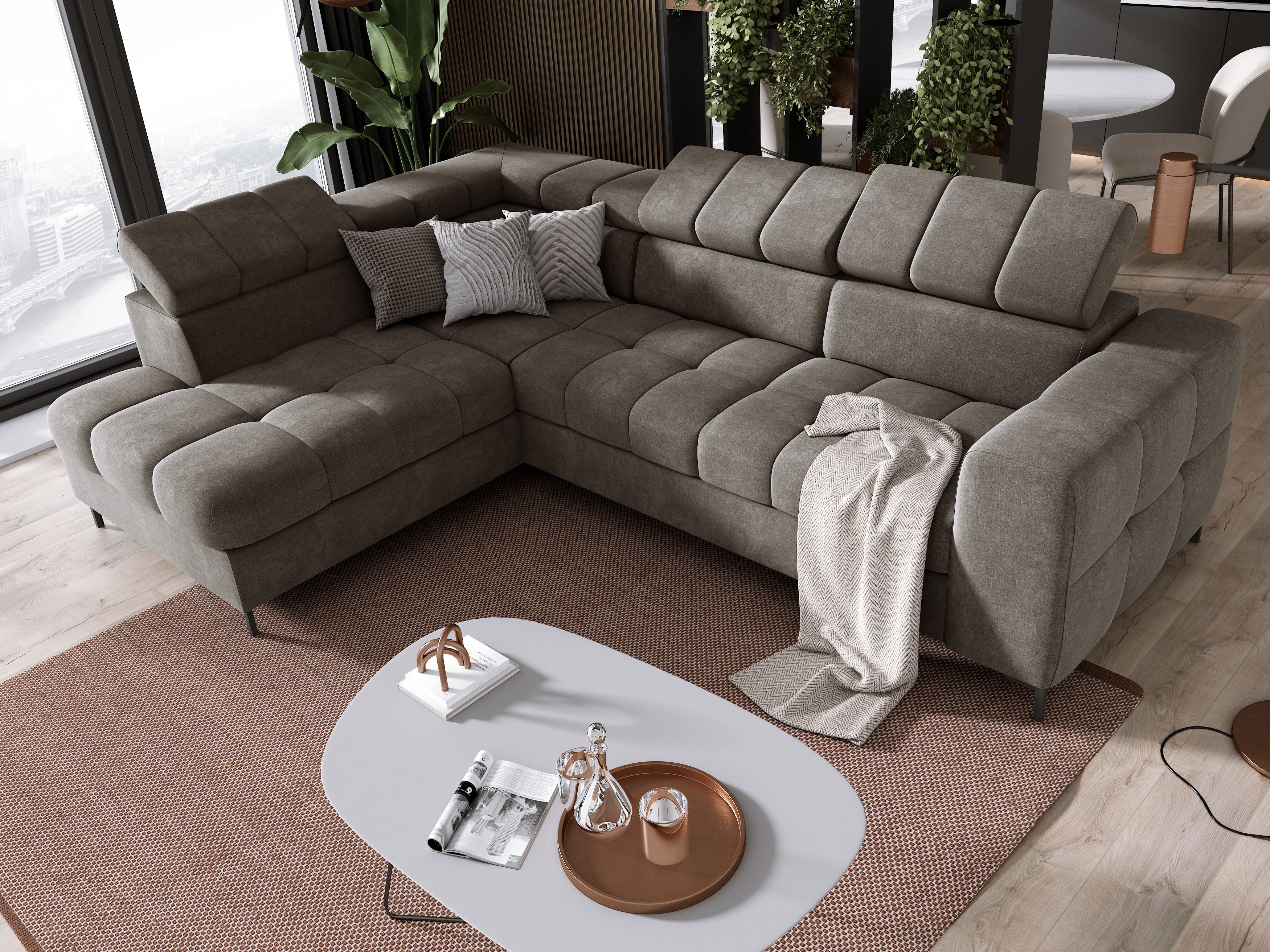 Narożnik PABLOS układ L strona Lewa w tkaninie VOGUE 06 regulowane zagłówki z funkcją spania
