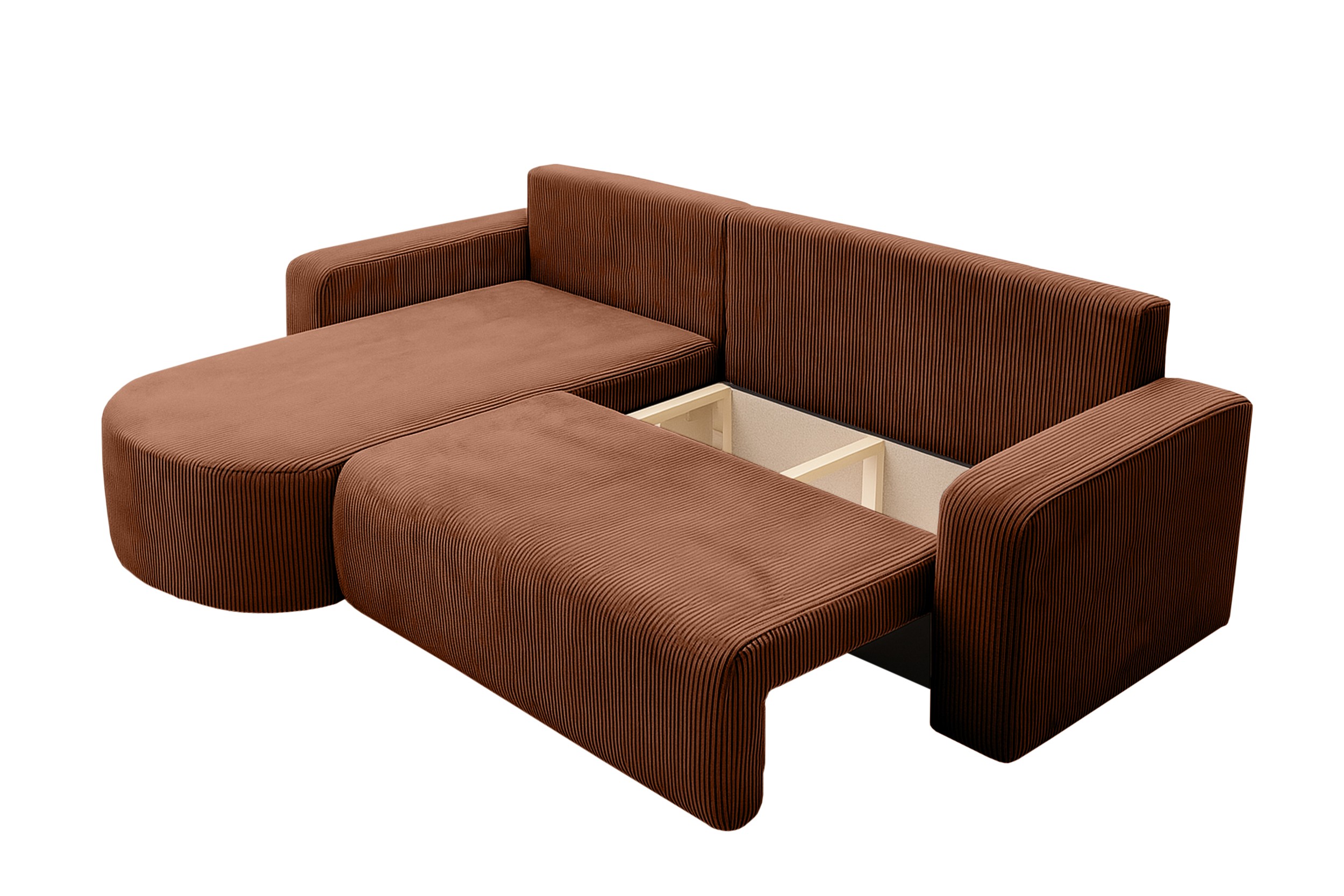 Rozkładany narożnik POSO XL to połączenie komfortu, funkcjonalności i nowoczesnego designu. Jego uniwersalny kształt litery L oraz zaokrąglona otomana sprawiają, że doskonale komponuje się z różnymi stylami wnętrz – zarówno klasycznymi, jak i nowoczesnymi.