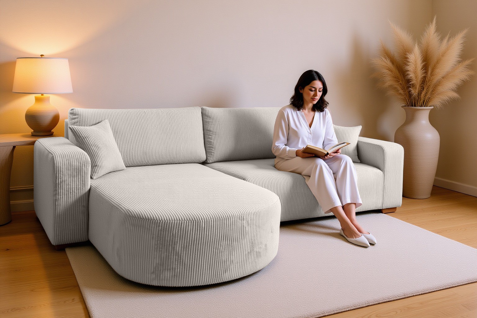 Rozkładany narożnik POSO XL to połączenie komfortu, funkcjonalności i nowoczesnego designu. Jego uniwersalny kształt litery L oraz zaokrąglona otomana sprawiają, że doskonale komponuje się z różnymi stylami wnętrz – zarówno klasycznymi, jak i nowoczesnymi.