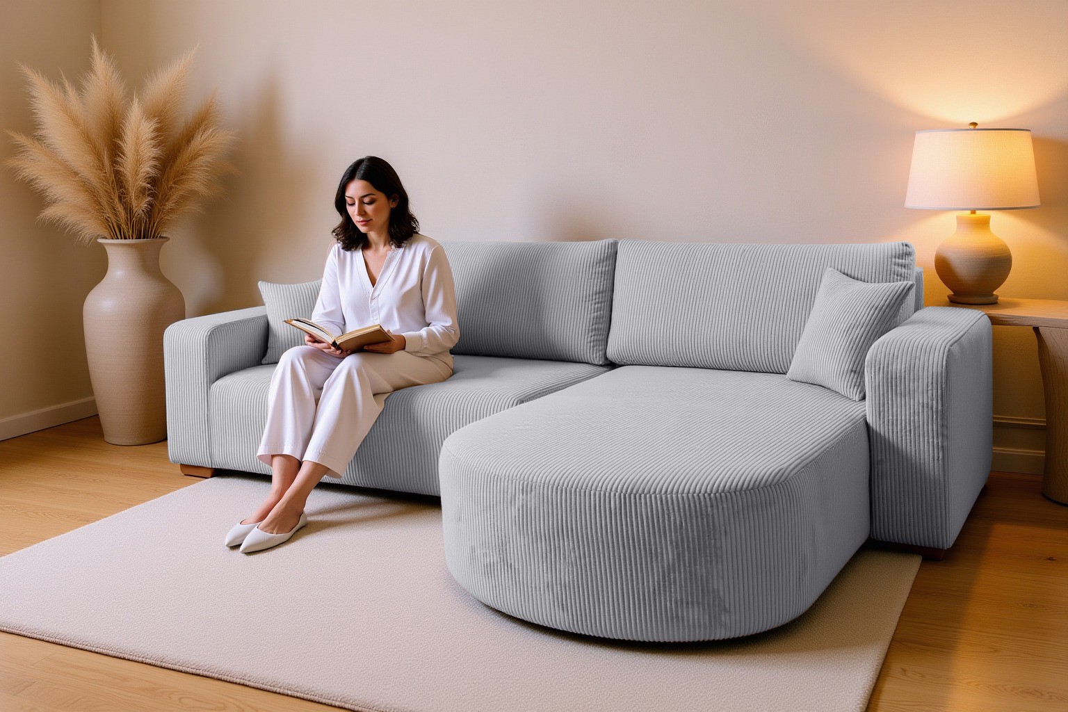 Rozkładany narożnik POSO XL to połączenie komfortu, funkcjonalności i nowoczesnego designu. Jego uniwersalny kształt litery L oraz zaokrąglona otomana sprawiają, że doskonale komponuje się z różnymi stylami wnętrz – zarówno klasycznymi, jak i nowoczesnymi.