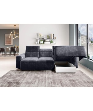 Minimalistyczna forma i subtelne pikowania nadają narożnikowi wyjątkowego stylu, a regulowane zagłówki oraz elektryczna funkcja spania zapewniają wygodę użytkowania na co dzień.