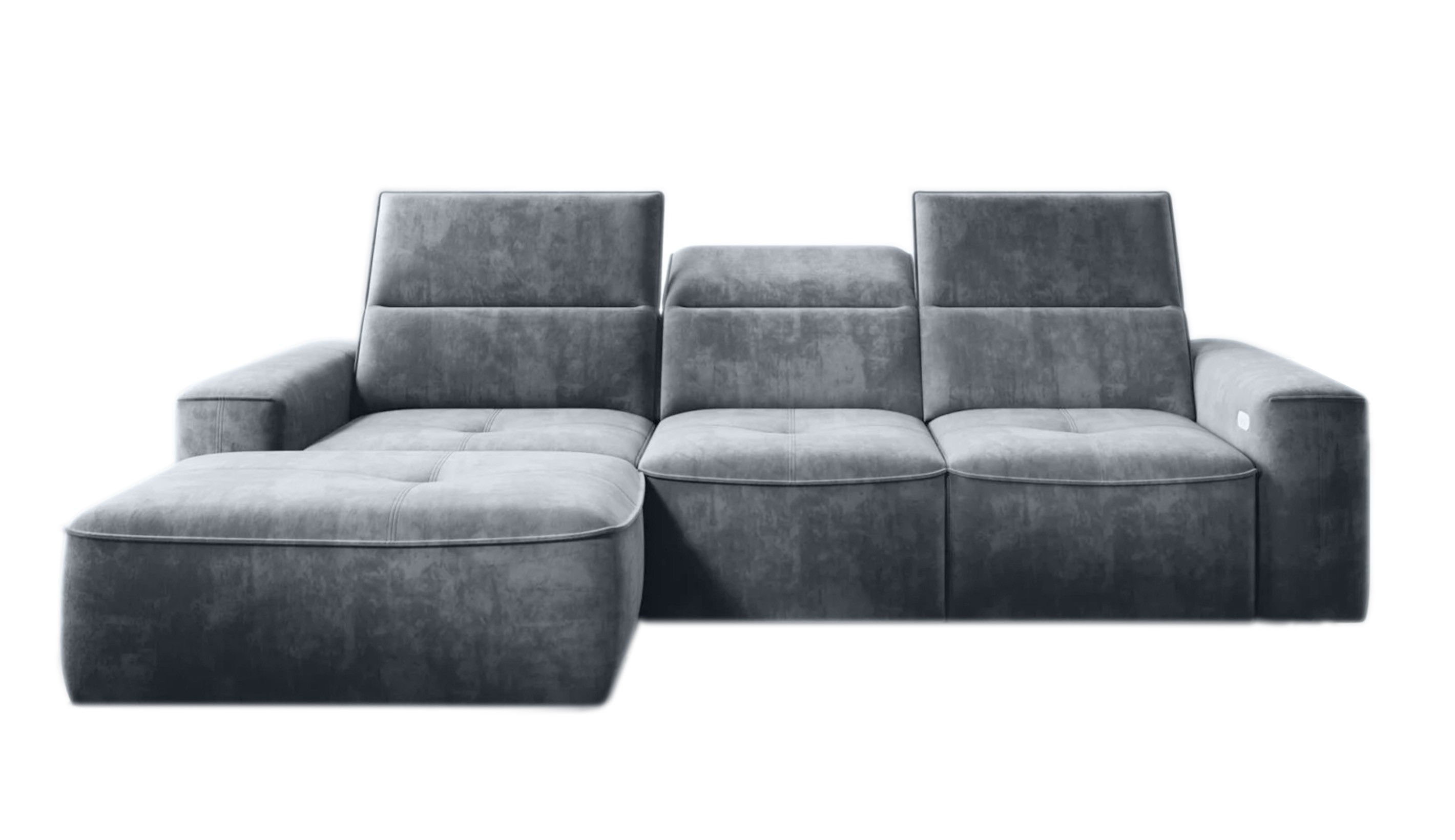Minimalistyczna forma i subtelne pikowania nadają narożnikowi wyjątkowego stylu, a regulowane zagłówki oraz elektryczna funkcja spania zapewniają wygodę użytkowania na co dzień.