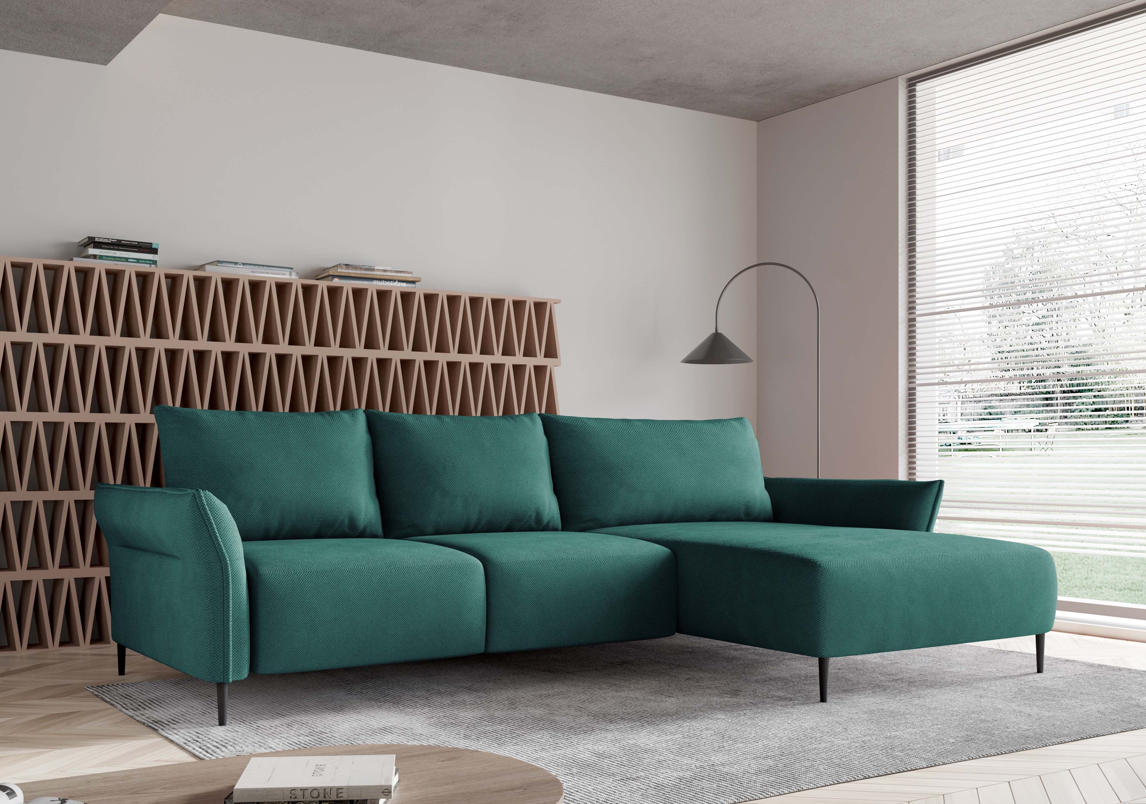 Nowoczesny styl i możliwość wyboru strony narożnika pozwalają dopasować model LUIS do niemal każdej aranżacji.