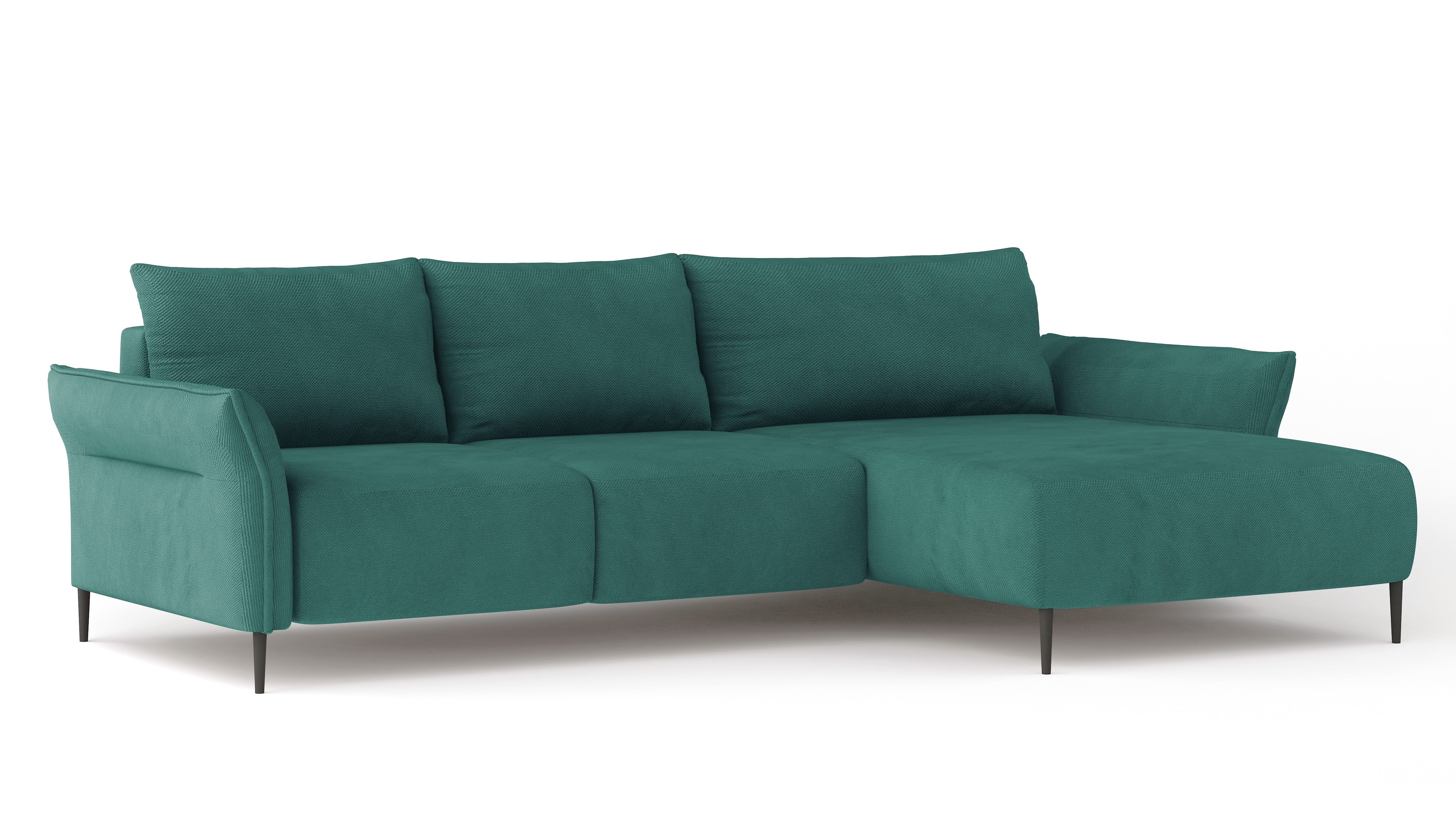 Narożnik LUIS Prawostronny zestaw z funkcją spania pojemnikiem i poduszkami CURIO 37 Turkusowy WERSAL