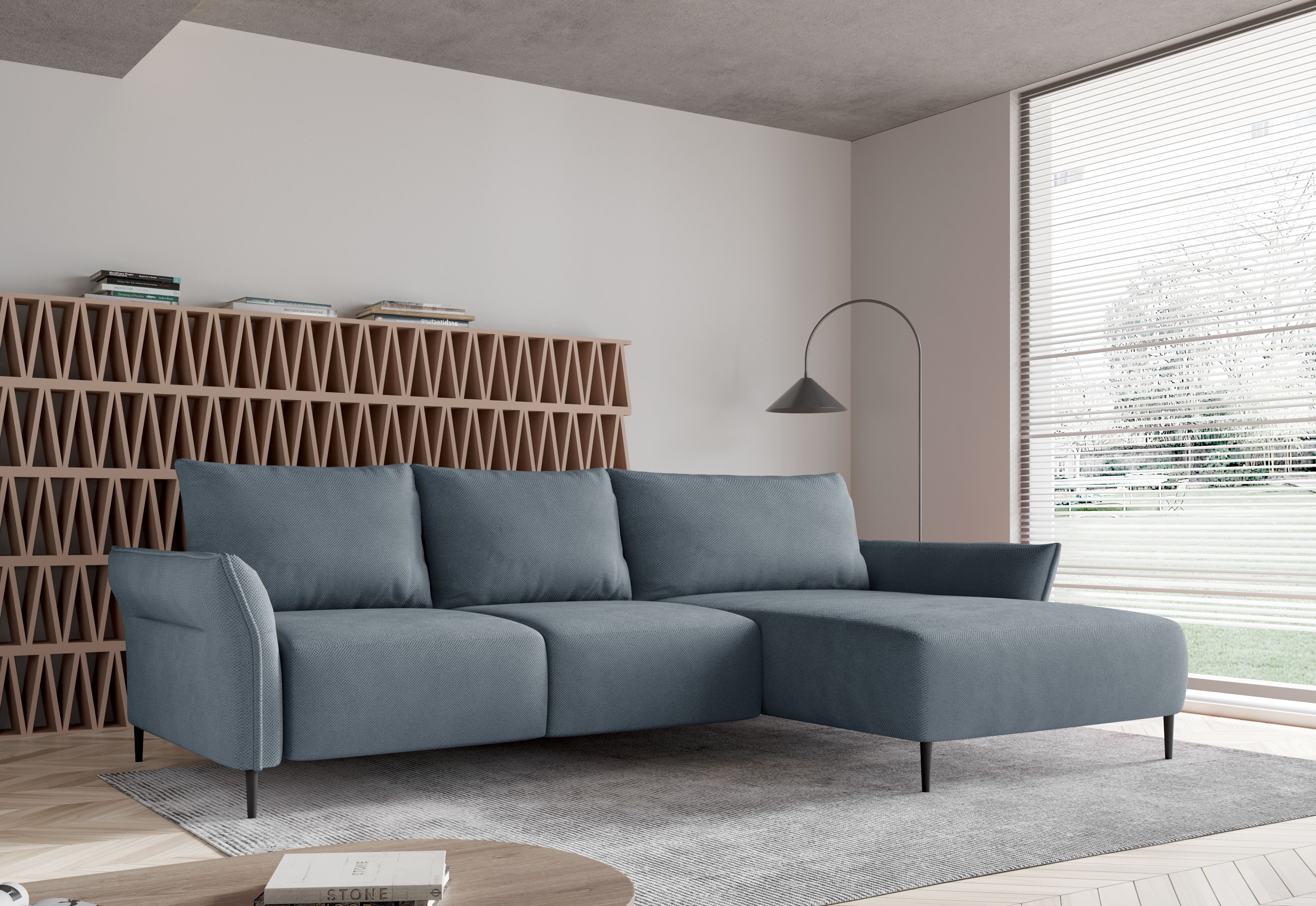 Nowoczesny styl i możliwość wyboru strony narożnika pozwalają dopasować model LUIS do niemal każdej aranżacji.