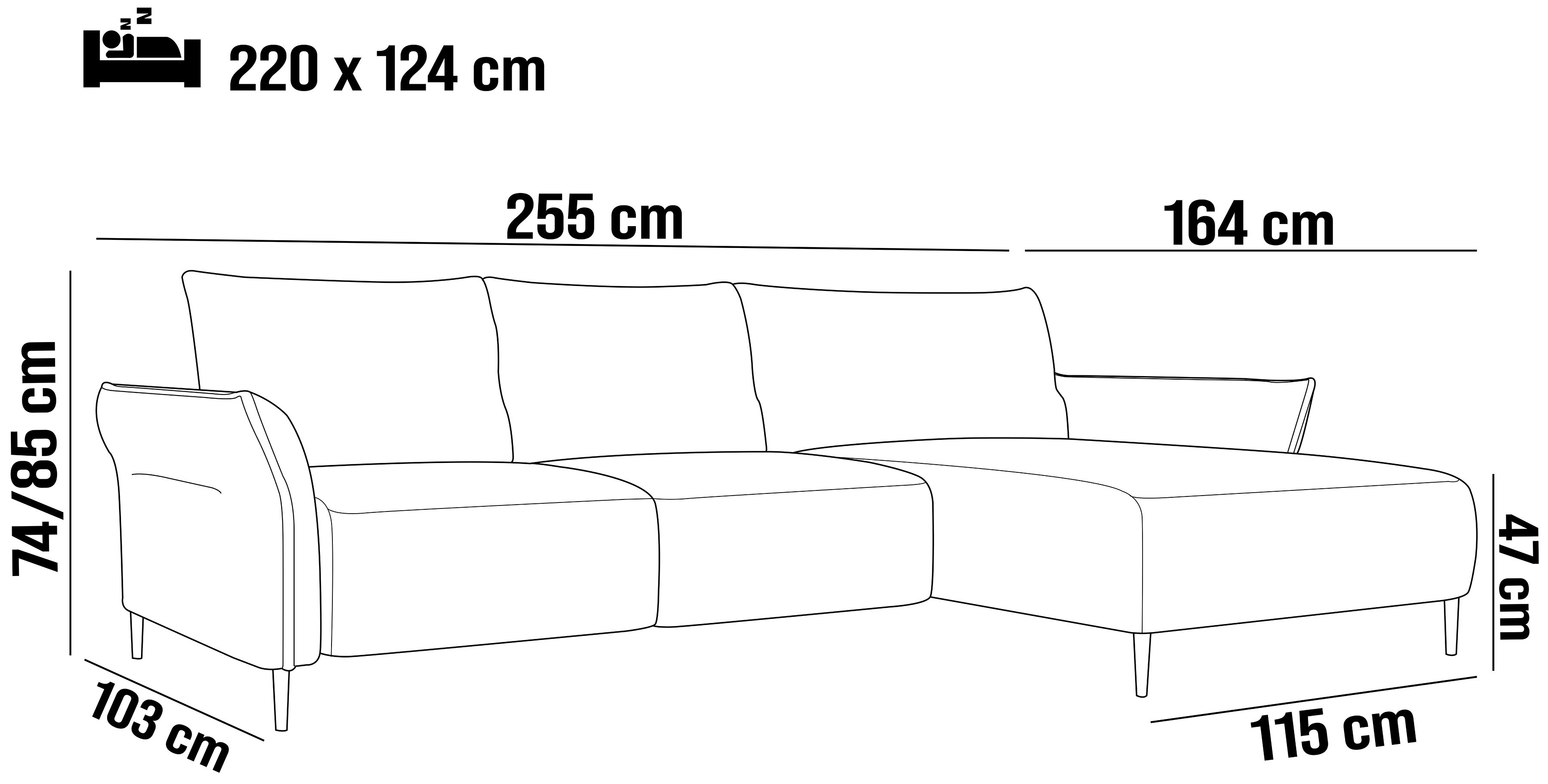 Dzięki zastosowaniu sprężyn falistych i pianki wysokoelastycznej, narożnik LUIS zapewnia wygodę zarówno podczas siedzenia, jak i snu. Funkcja spania oraz praktyczny pojemnik na pościel sprawiają, że to mebel idealny do salonu lub pokoju dziennego.