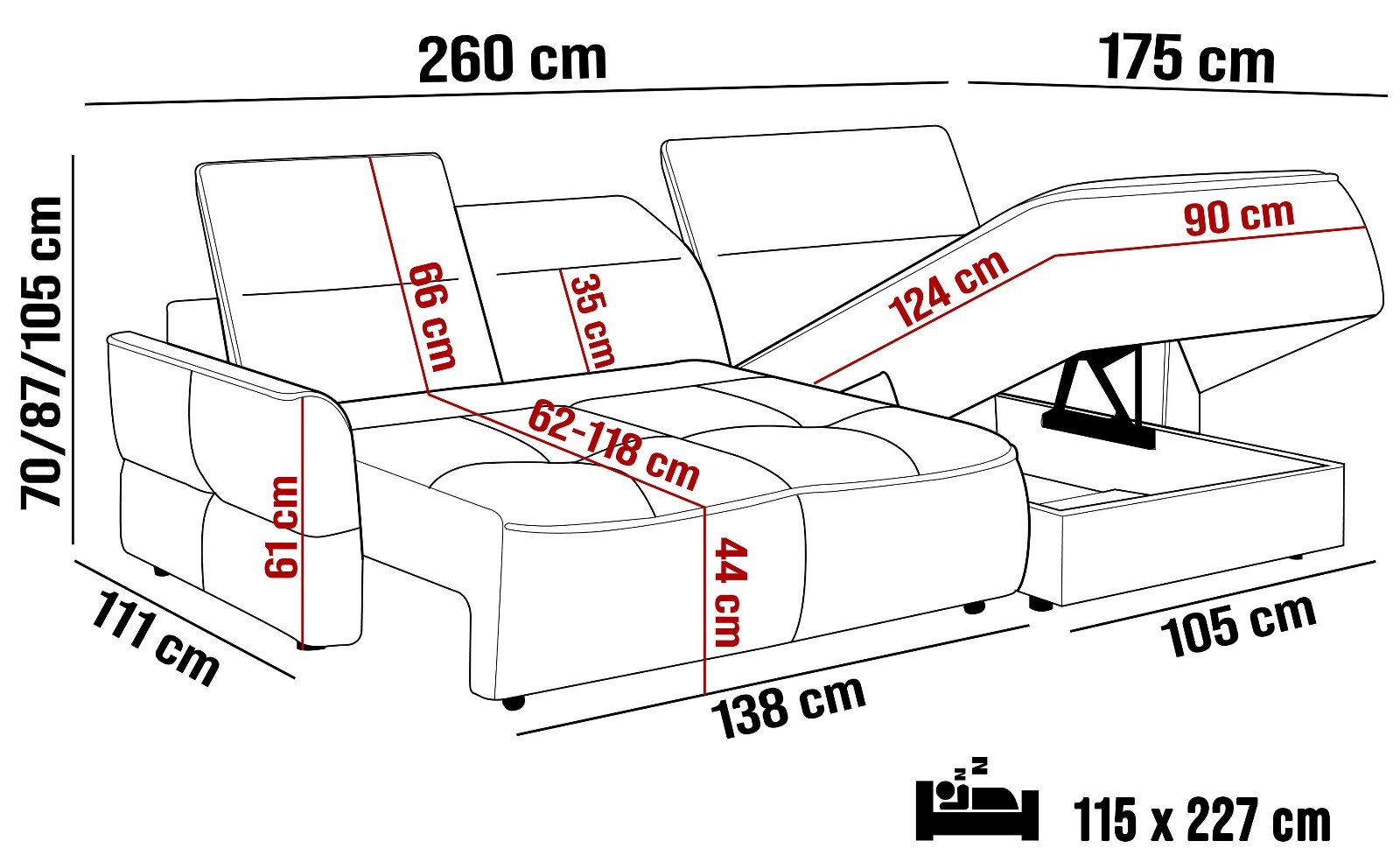 • Możliwość wyboru strony narożnika: prawa / lewa