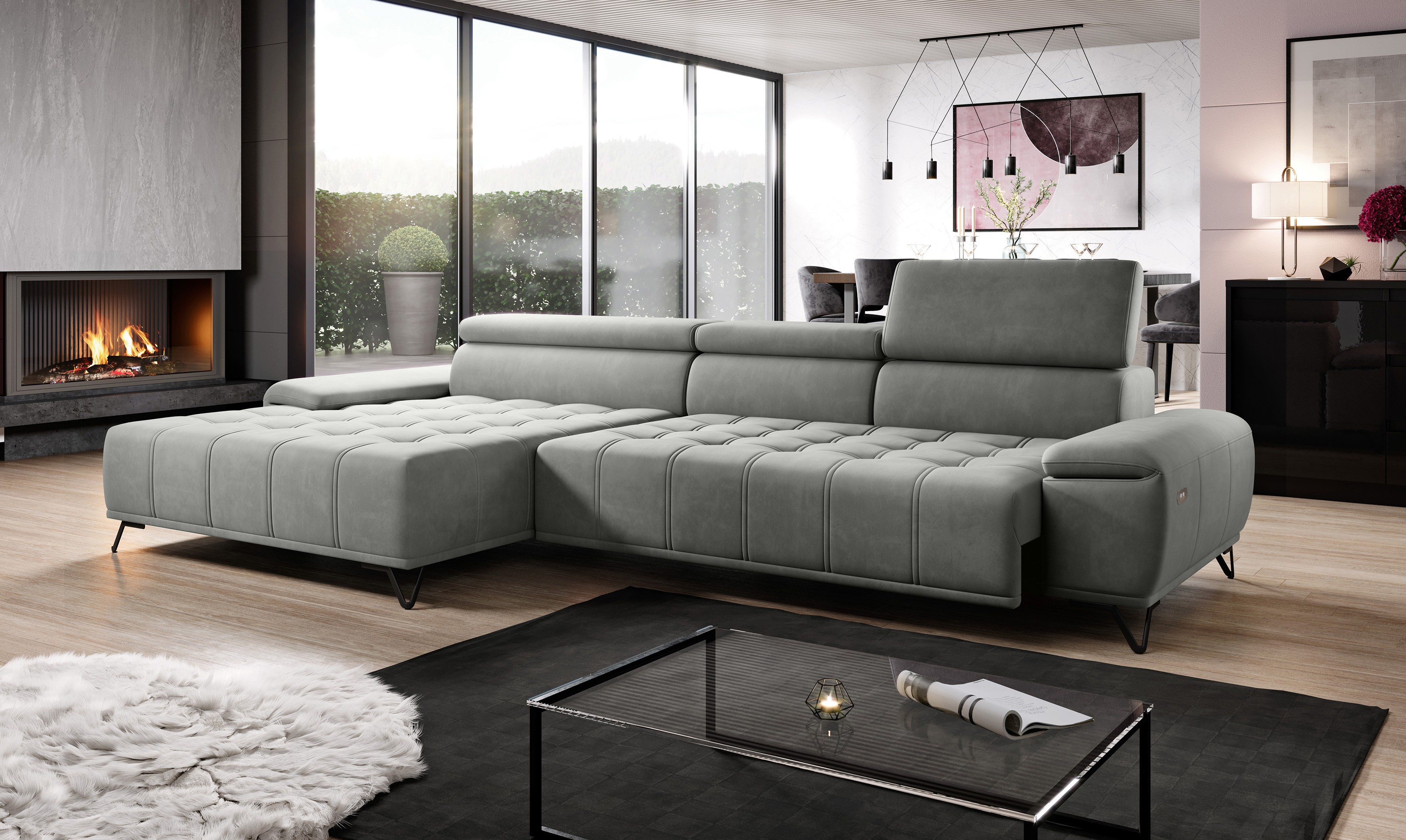 Narożnik PALLADIO MINI z elektryczną regulacją siedziska Lewostronny w tkaninie RIVIERA 91 WERSAL