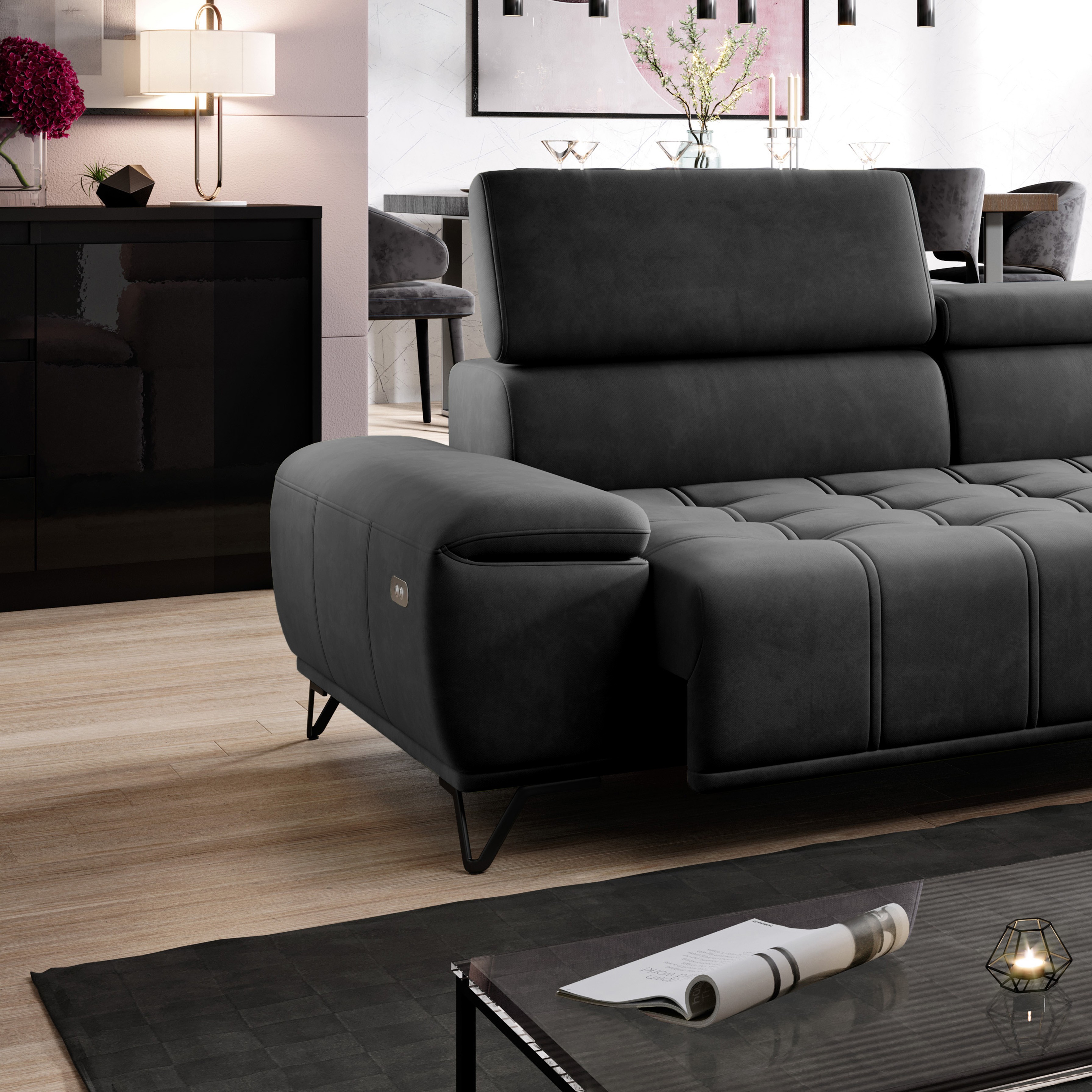 Subtelne pikowania podkreślają jego ponadczasowy charakter, a elektrycznie wysuwane siedzisko oraz regulowane zagłówki (funkcja RELAX) pozwalają na dopasowanie do indywidualnych potrzeb.