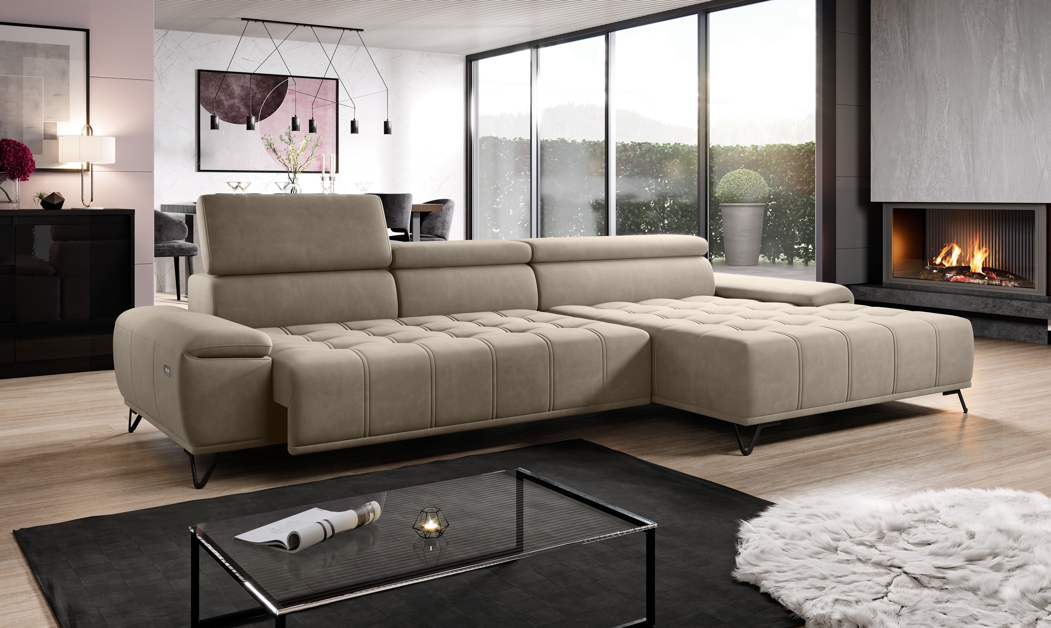 Subtelne pikowania podkreślają jego ponadczasowy charakter, a elektrycznie wysuwane siedzisko oraz regulowane zagłówki (funkcja RELAX) pozwalają na dopasowanie do indywidualnych potrzeb.