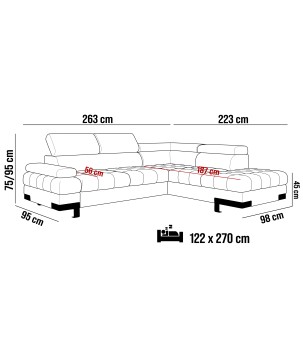 Narożnik SELVA L z funkcją spania i pojemnikiem Lewostronny w tkaninie AUSTIN 05 WERSAL