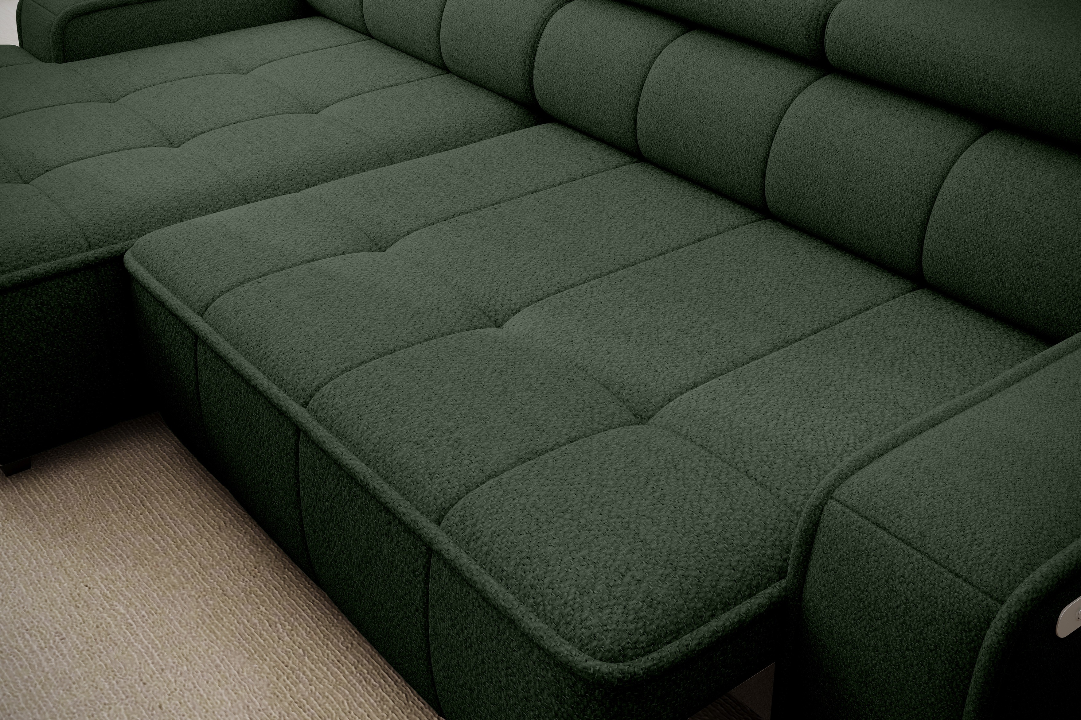 Nowoczesny narożnik THIAGO S to propozycja dla osób, które cenią sobie połączenie elegancji, wygody i innowacyjnych rozwiązań. Wyróżnia się nie tylko estetycznym designem z subtelnymi pikowaniami, ale również zaawansowaną funkcjonalnością, która podnosi komfort codziennego użytkowania.
