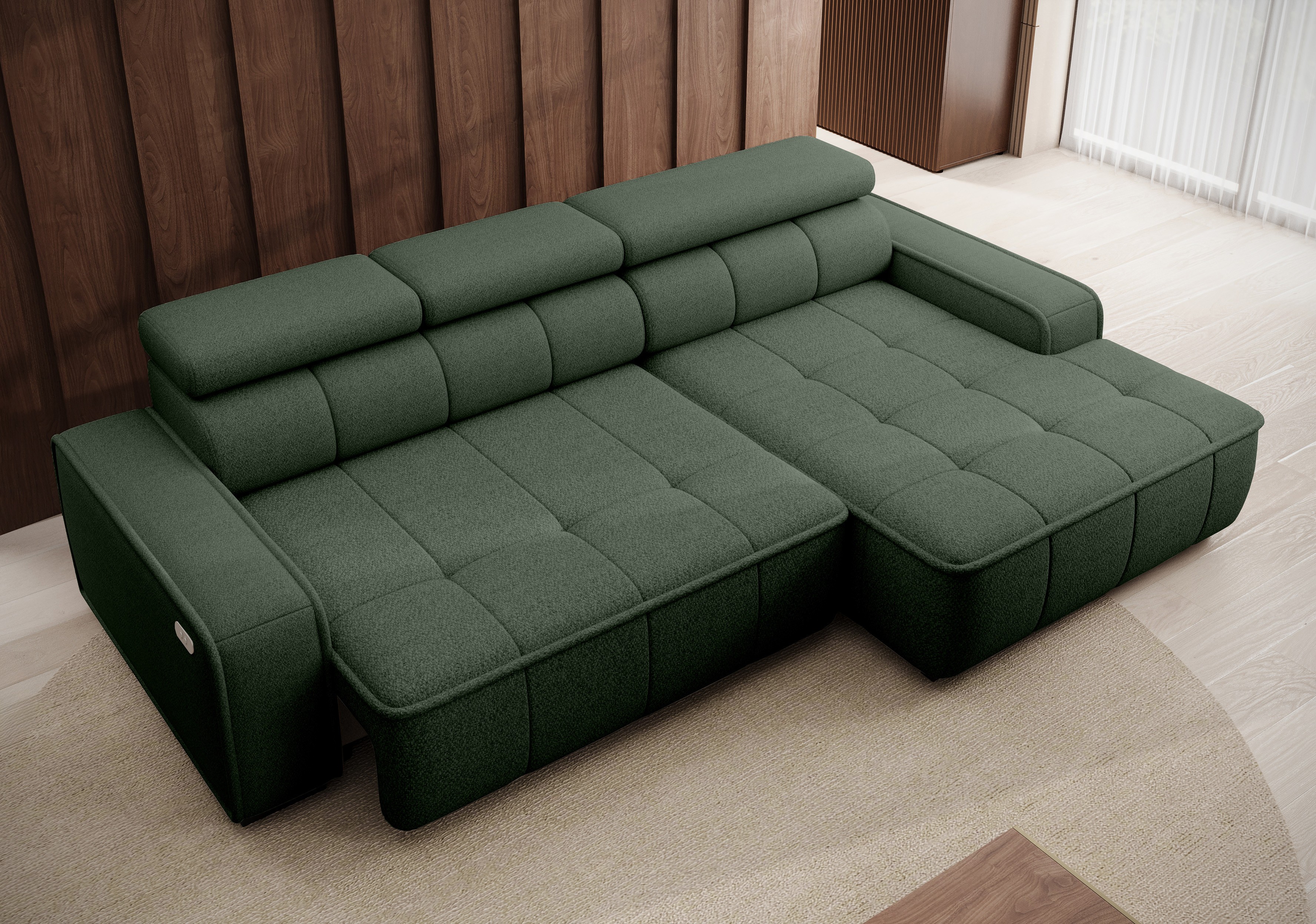 Dzięki elektrycznie regulowanej głębokości siedziska (0–27 cm) oraz regulowanym zagłówkom (funkcja RELAX), narożnik łatwo dostosujesz do swoich preferencji – zarówno podczas odpoczynku, jak i spotkań z bliskimi.