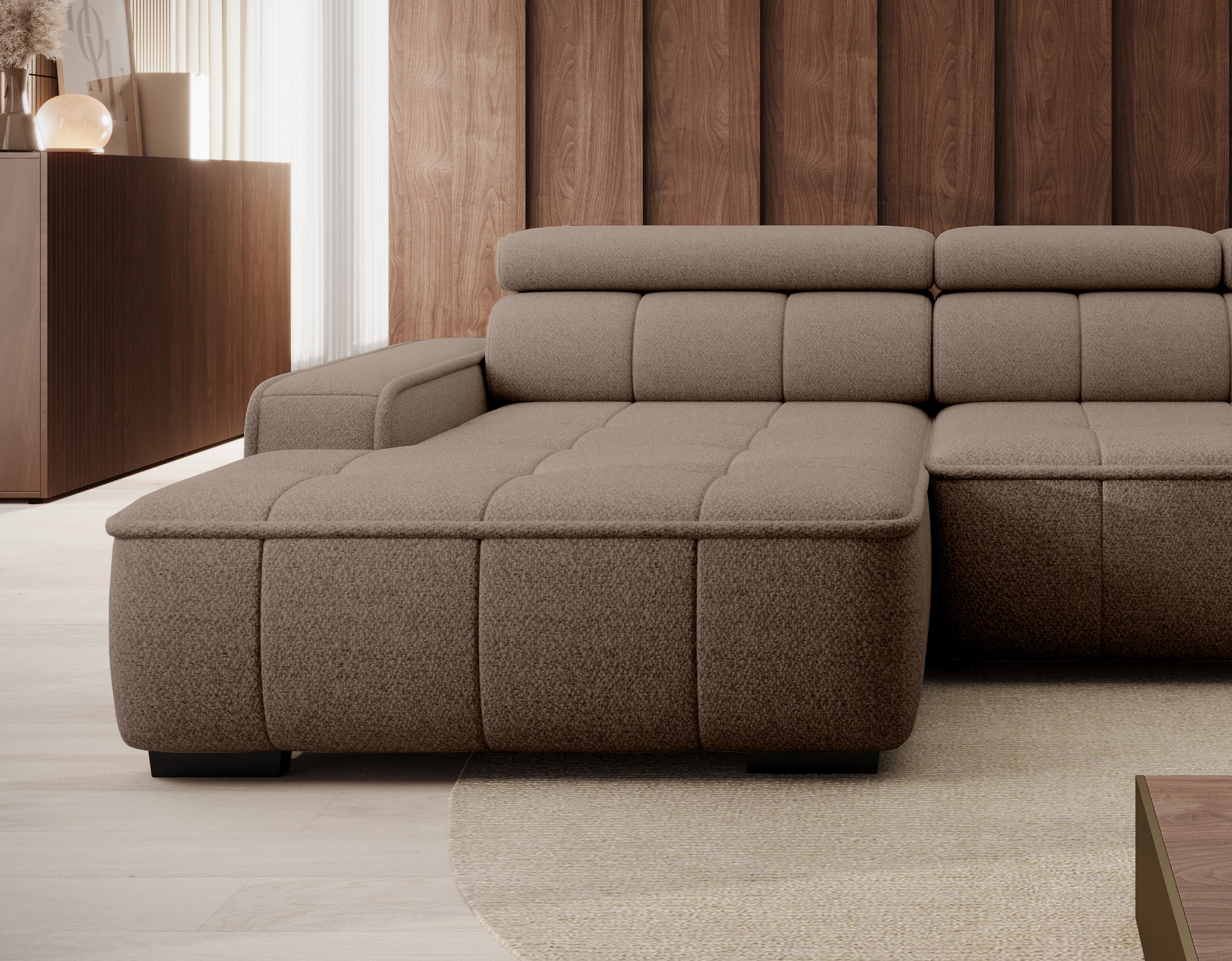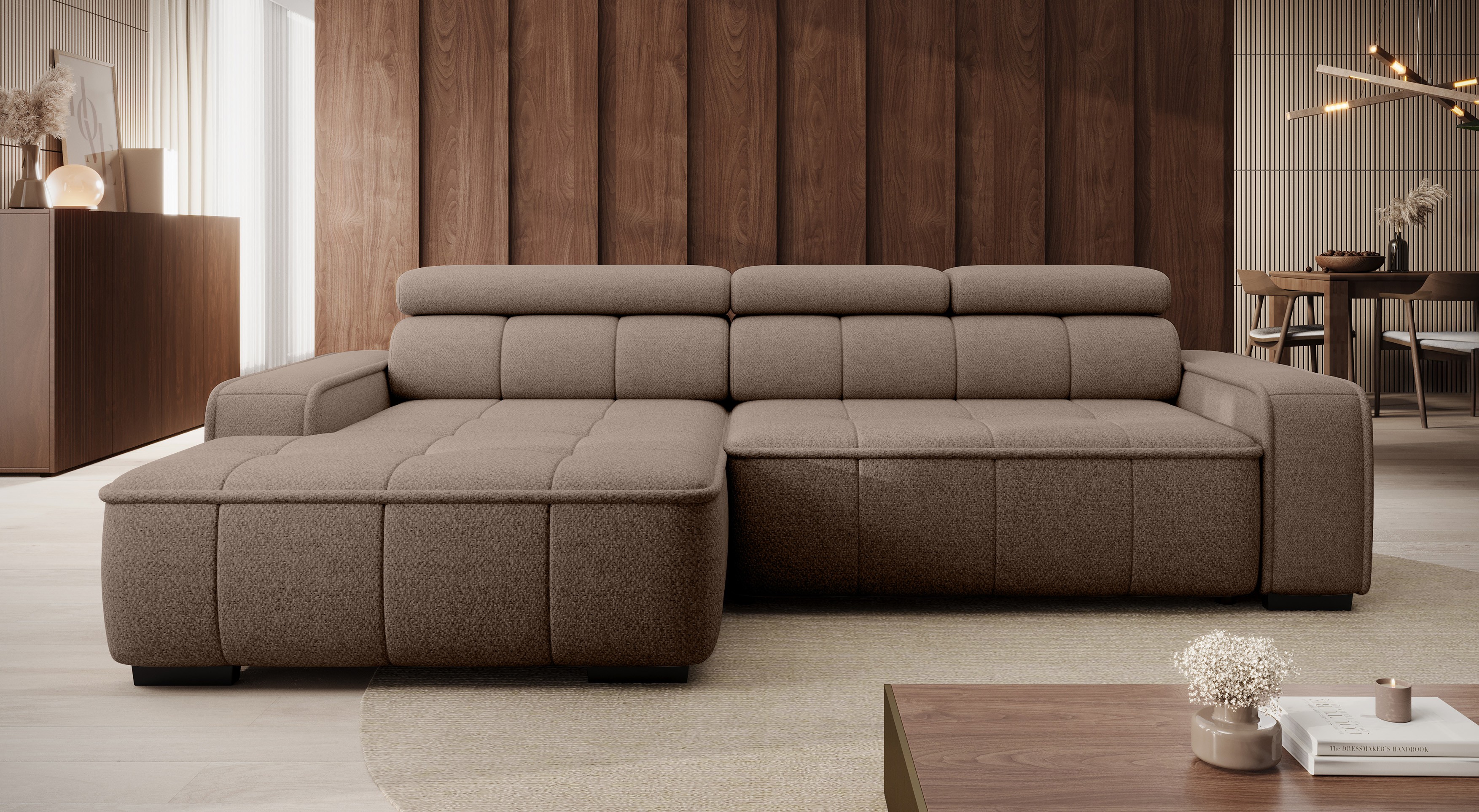 Dzięki elektrycznie regulowanej głębokości siedziska (0–27 cm) oraz regulowanym zagłówkom (funkcja RELAX), narożnik łatwo dostosujesz do swoich preferencji – zarówno podczas odpoczynku, jak i spotkań z bliskimi.